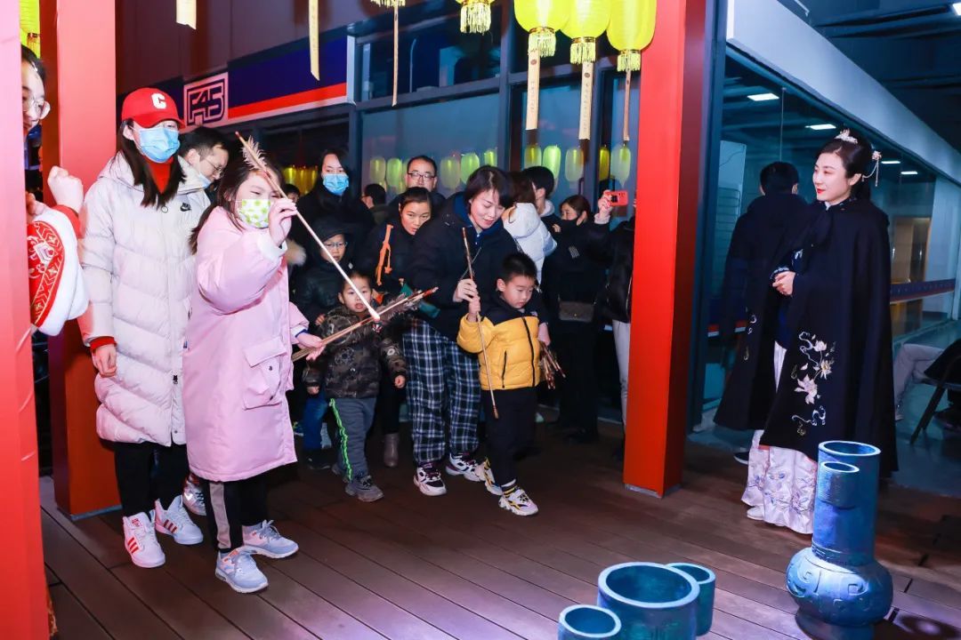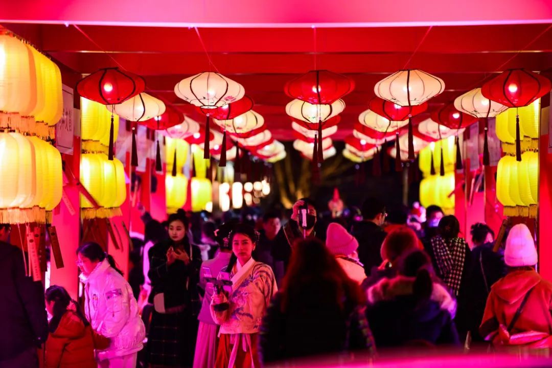 沉浸式表演《人约元夕》在2月24日18:00、19:30表演两场,以主人翁视角,串联建鼓、微剧、灯市、汉舞、祈福、巡游这七种场景,观众可以追随主角,移步换景,心随境转。