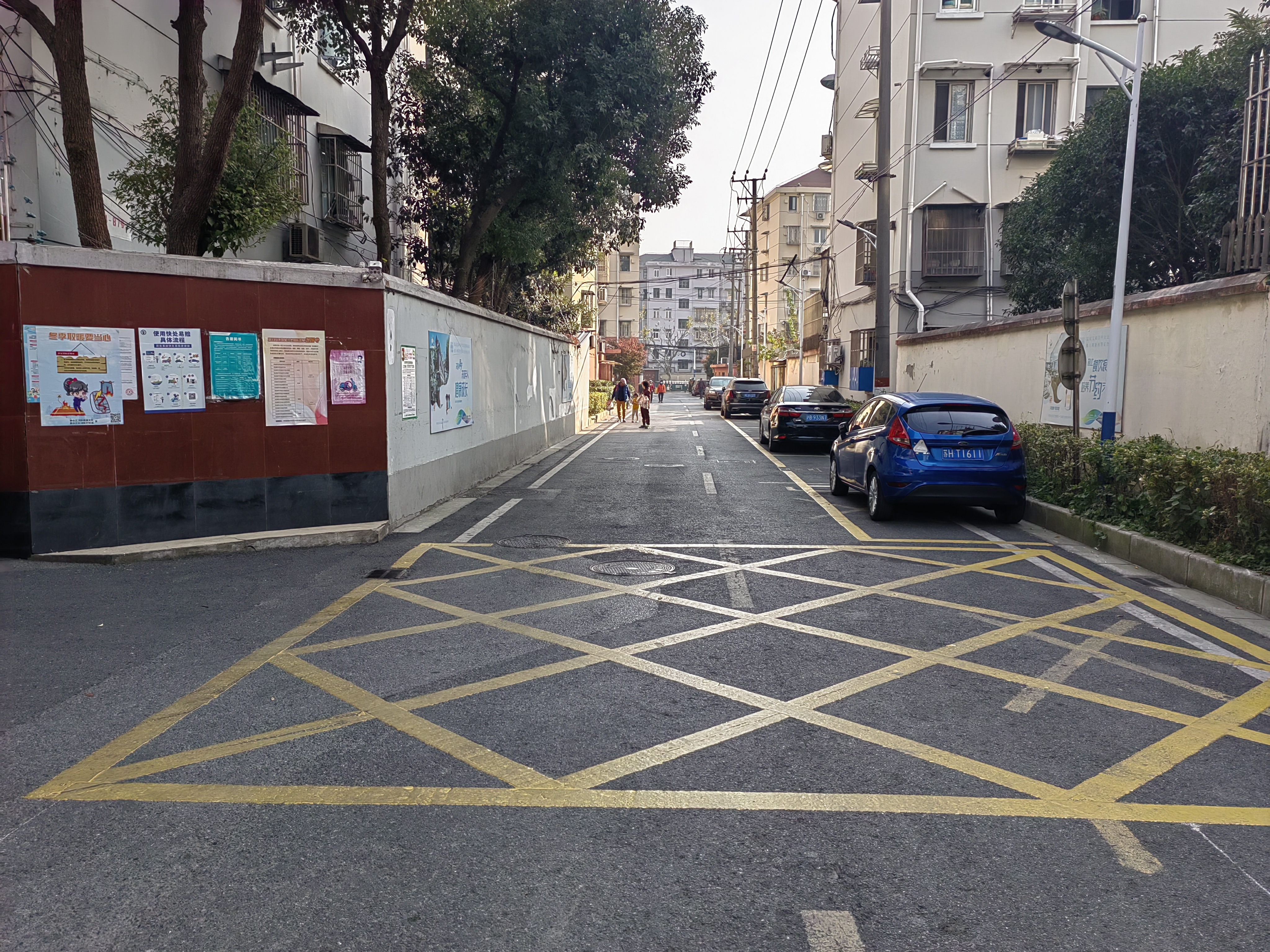 谁又能想到,就在一年前,这条通道还是居民经常拨打“12345市民热线”反映的管理“痛点”。出入车辆多、路面宽度仅五六米,且近一半路幅被随意停放的车辆占据、不时从通道左侧上海市皮肤病医院驶出的车辆让小路堵上加堵……这些都成了引发通道长期“肠梗阻”,尤其是上下班高峰时段,通常需要15分钟,有时甚至是20分钟才能驶出这条内部道路的主要“病因”。