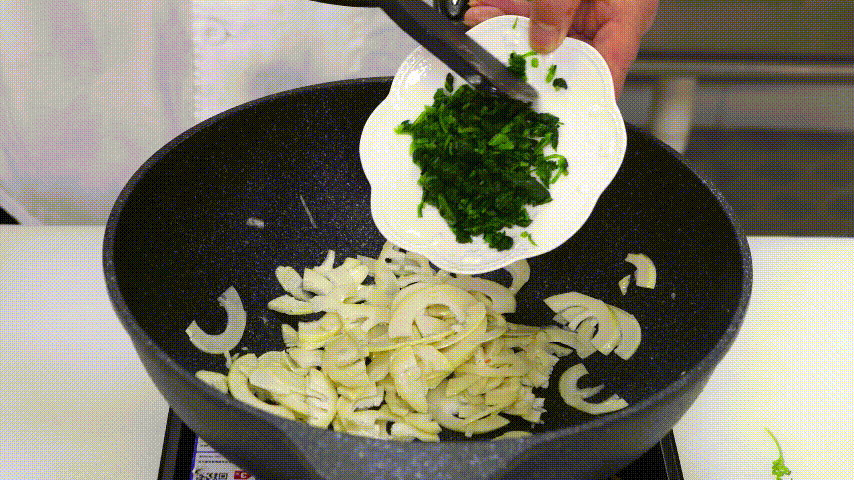 4.放入切好的荠菜,进行翻炒,注意不要炒蔫,根据个人口味放入调味品。