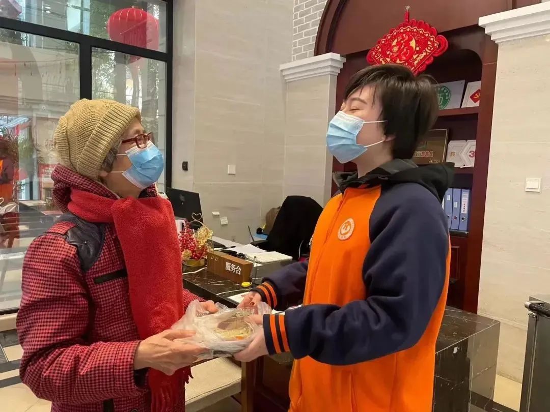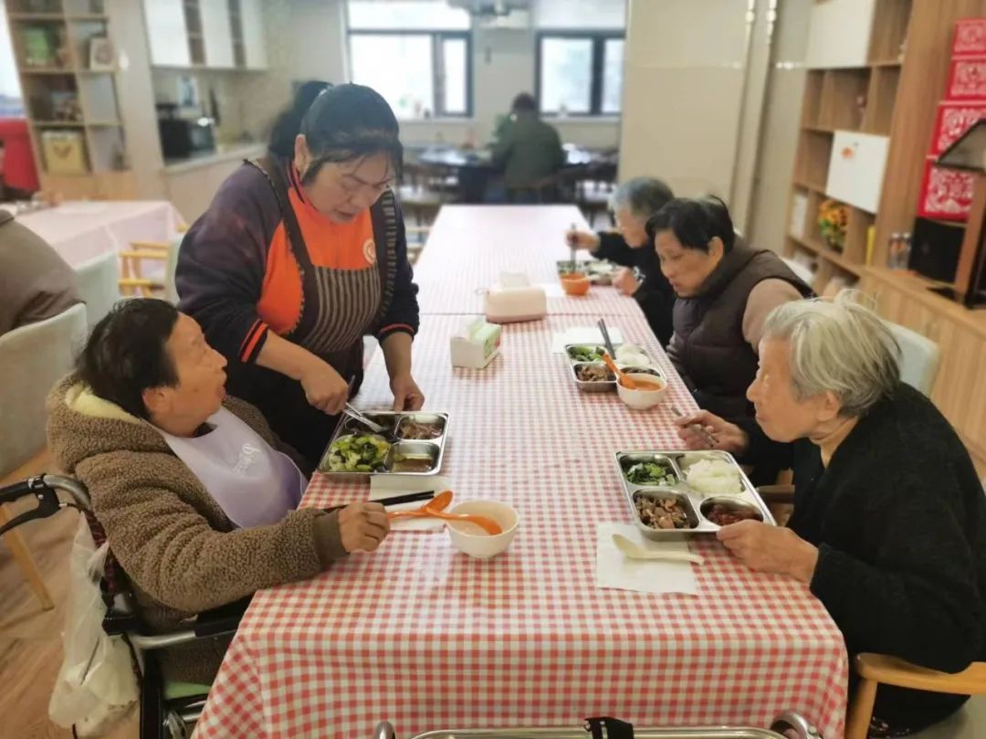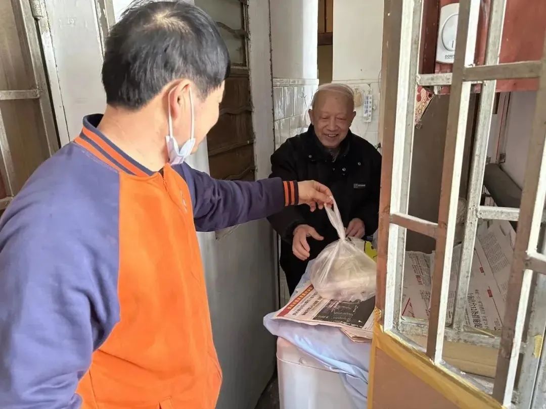 日前,上午11点不到,虹桥街道为老服务分中心的社区食堂里已有不少老人坐在了餐桌前。 香煎鸡排、鹌鹑蛋红烧肉、菌菇炒肉片、蒜泥青菜、罗宋汤......此时,刚出锅的饭菜已被整齐地摆放在窗口,散发着诱人的香气。一旁的工作人员正趁热打包盒饭,为社区老人上门送餐作准备。 “有几天没来吃,很想念这儿的味道。”89岁的老人杨阿婆一直是社区食堂的常客。春节在女儿家度过的她,刚一返回自己家,就迫不及待来“尝鲜”了。“清淡、酥烂,这里的饭菜更对我们老年人的胃口,还能跟老朋友们一起说说笑笑,多开心啊!” 11点30分,由万宏养老集团负责运营的华阳路街道综合为老服务分中心的送餐员肖师傅骑着送餐车准时来到了小区。爬上了6楼,拎着饭菜的他敲响了老人的家门。“郑伯伯,新年好啊!您的饭到了,赶紧趁热吃啊。” 见到“熟人”,老人感到格外开心,脸上洋溢出了幸福的笑容。“老准时的!我一直在你们这儿订餐的。跟阿拉‘屋里厢’烧得差不多,干净卫生、不咸不淡,我再也不用为吃饭的事犯愁了。”
