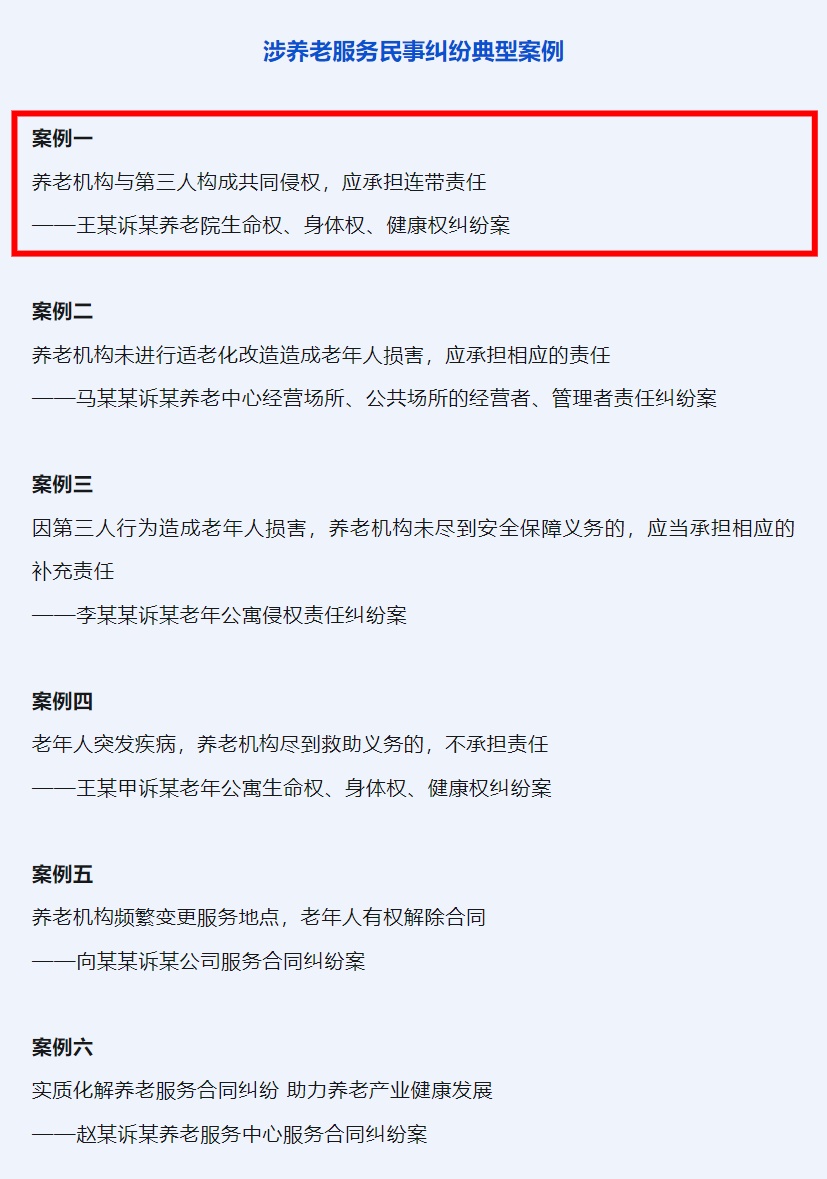 该案也是本次涉养老服务民事纠纷典型案例中上海唯一入选案例。