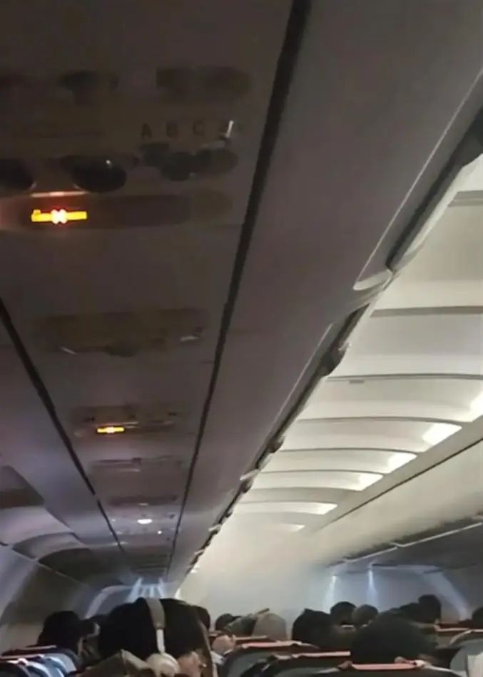 飞机紧急降落在香港国际机场后,地面的消防、警察上机检查,通报原因为充电宝使用不当,并提醒乘客后续不要再使用。