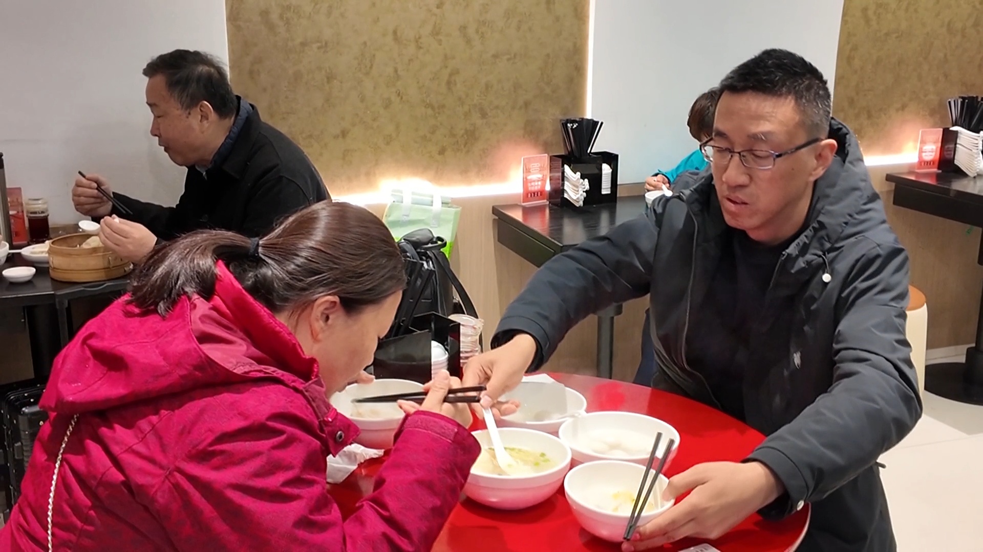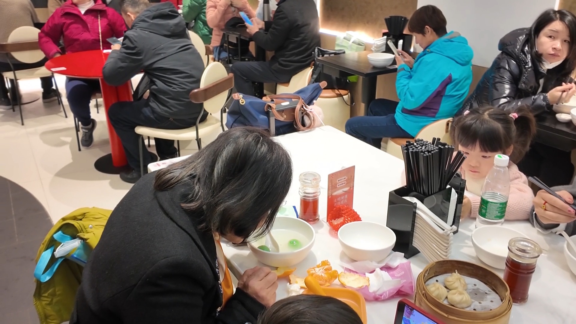 中午十一点刚过,店内便已座无虚席。不少游客节后错峰,趁着工作日来逛逛豫园、吃吃汤团,希望新的一年团团圆圆、和和美美。黑洋酥汤团、蟹粉肉汤团作为招牌口味,一甜一咸,自然最受市民钟爱。