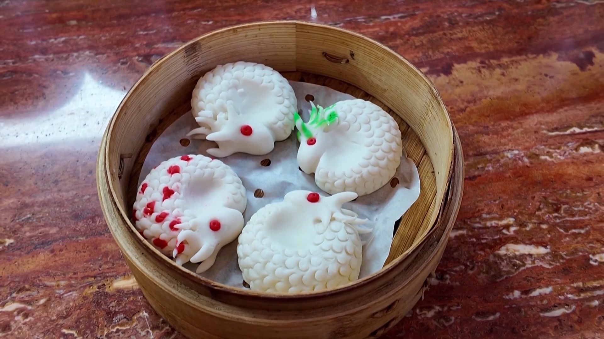 今年宁波汤团店还推出了龙年春节限定版“其乐龙龙”糯米福团。这款为龙年量身定制的龙形糯米福团,光是刻画龙鳞和龙角就要耗费一位点心师大半个小时的时间,雪白的团龙造型配上红枸杞眼睛,里面包裹着清甜可口的枣泥馅心,寓意着新年阖家团圆、甜蜜美满。不过这两天生意太火爆,“其乐龙龙”糯米福团只能少量供应,要吃的市民可要提前预订了。