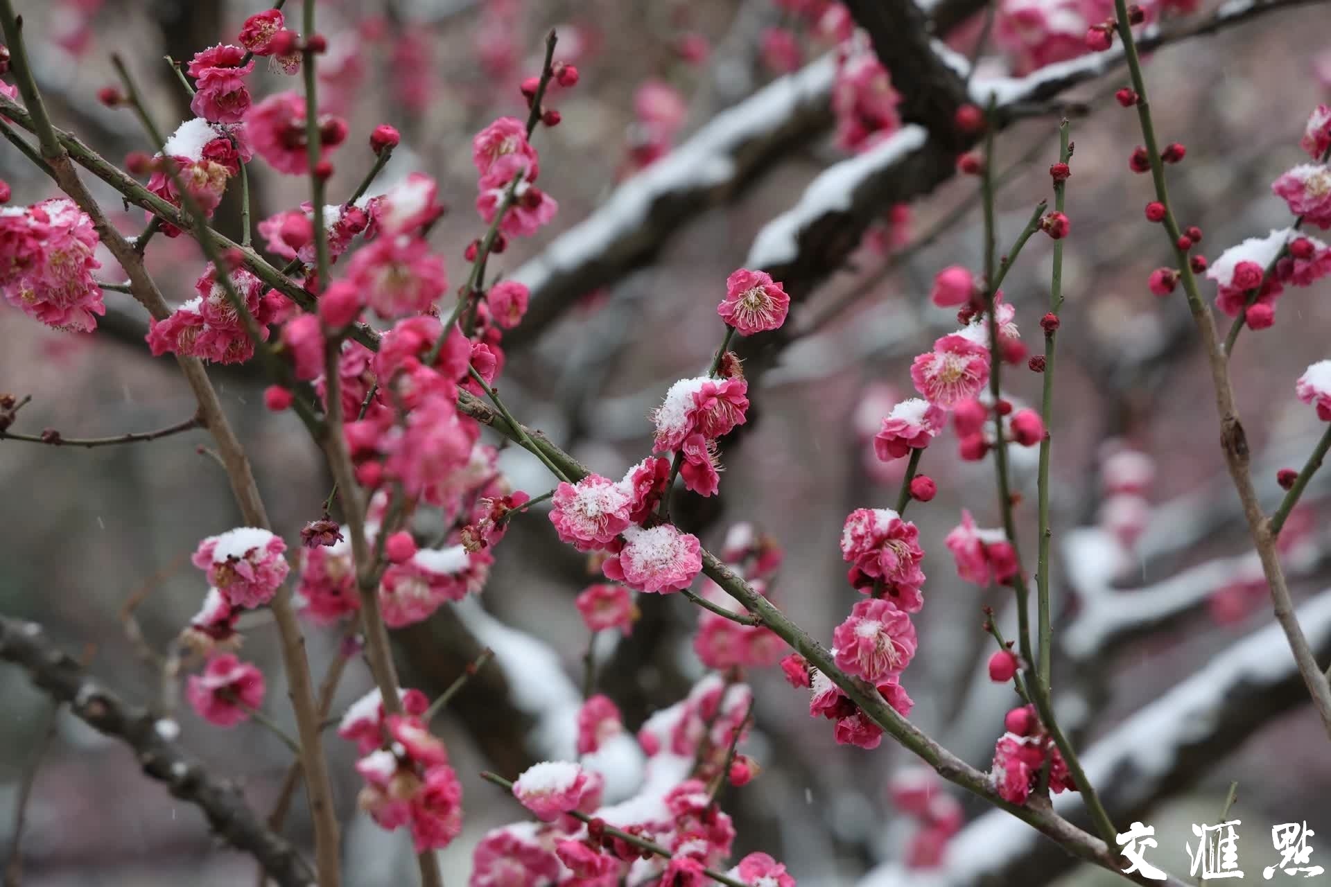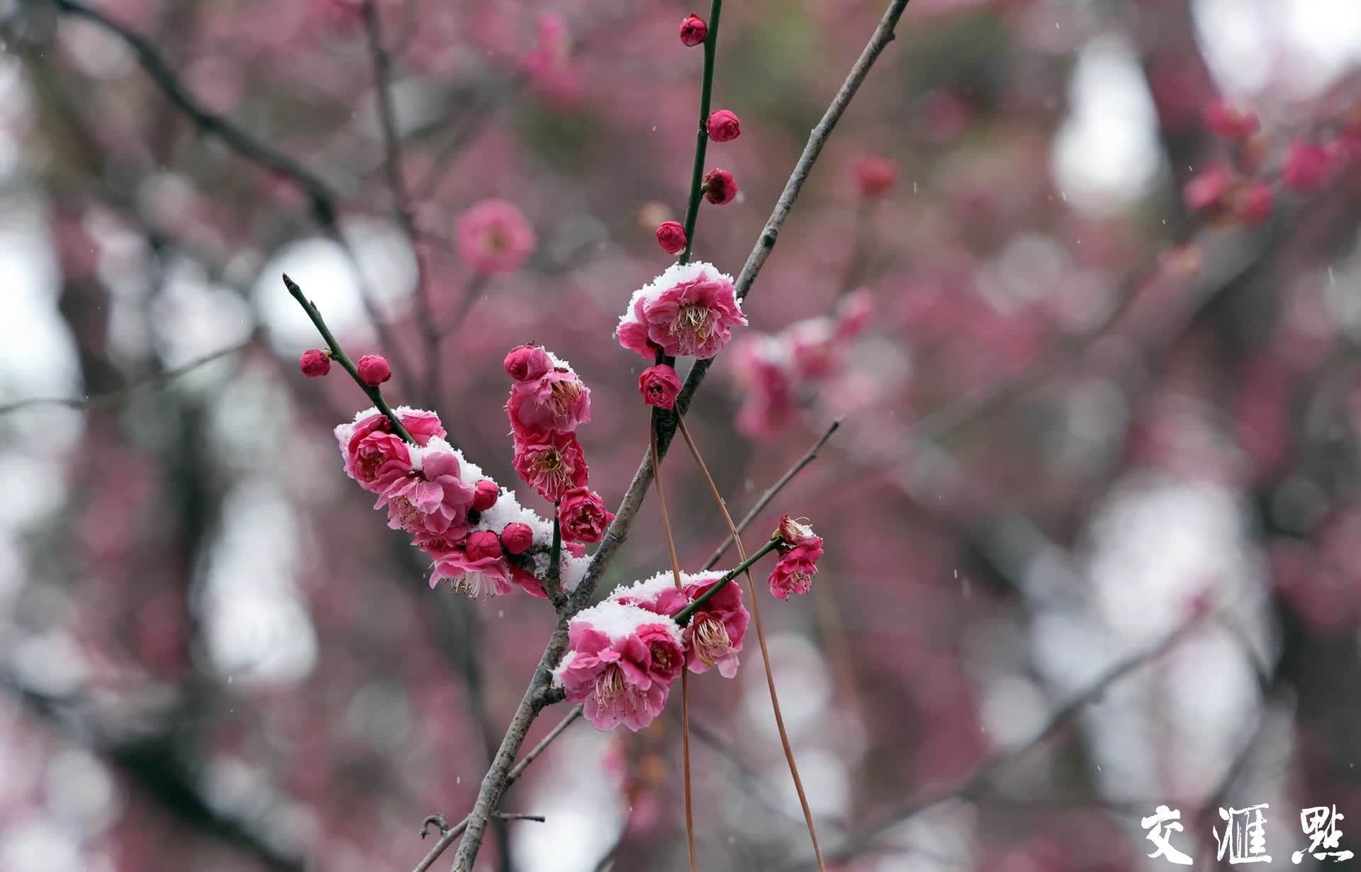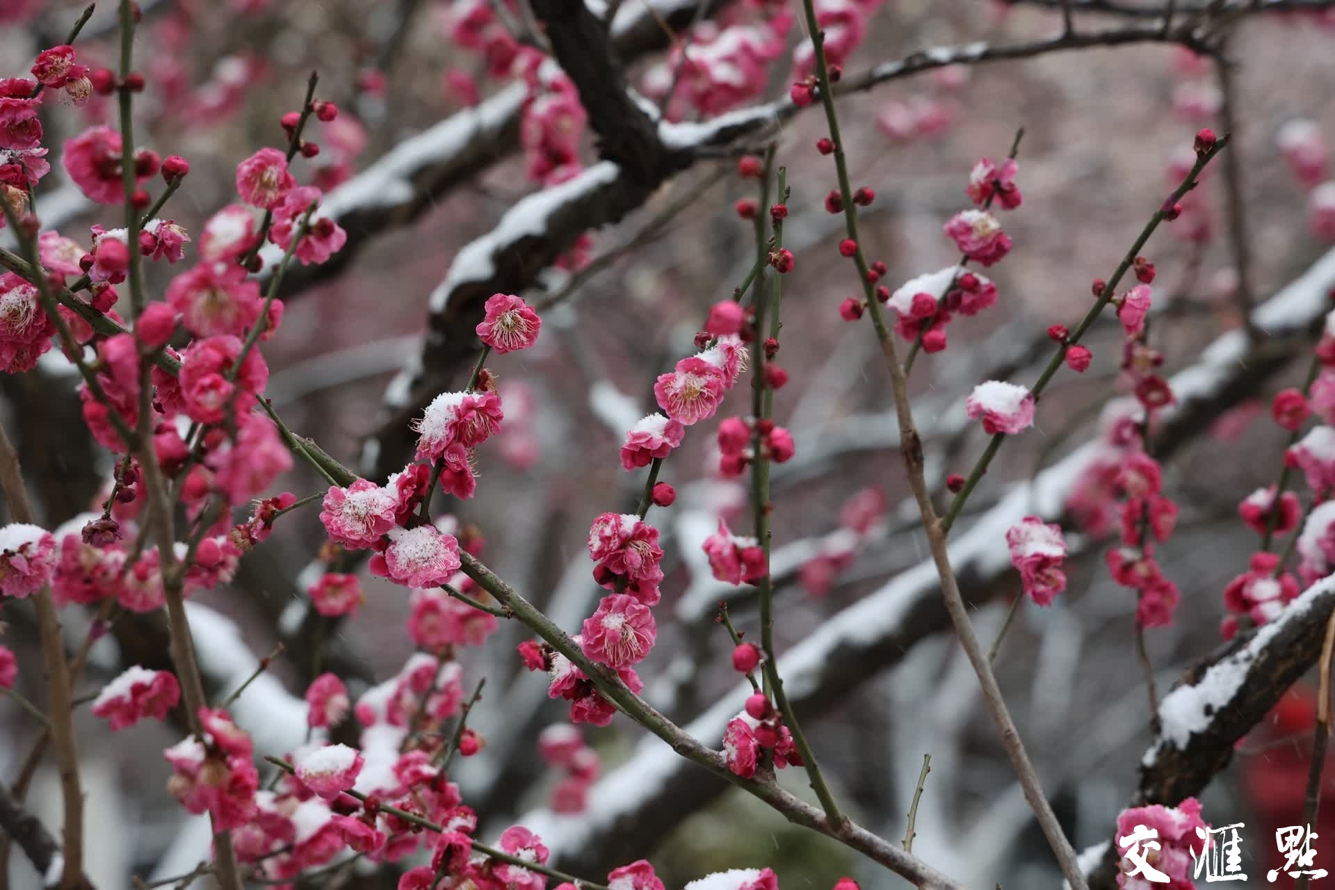 2024年2月22日,南京瑞雪普降,莫愁湖公园盛开的梅花披上了“雪衣”,雪中梅花枝头俏,梅花与白雪相依相衬,美不胜收,吸引众多市民前来欣赏。 新华日报·交汇点记者 宋宁 摄