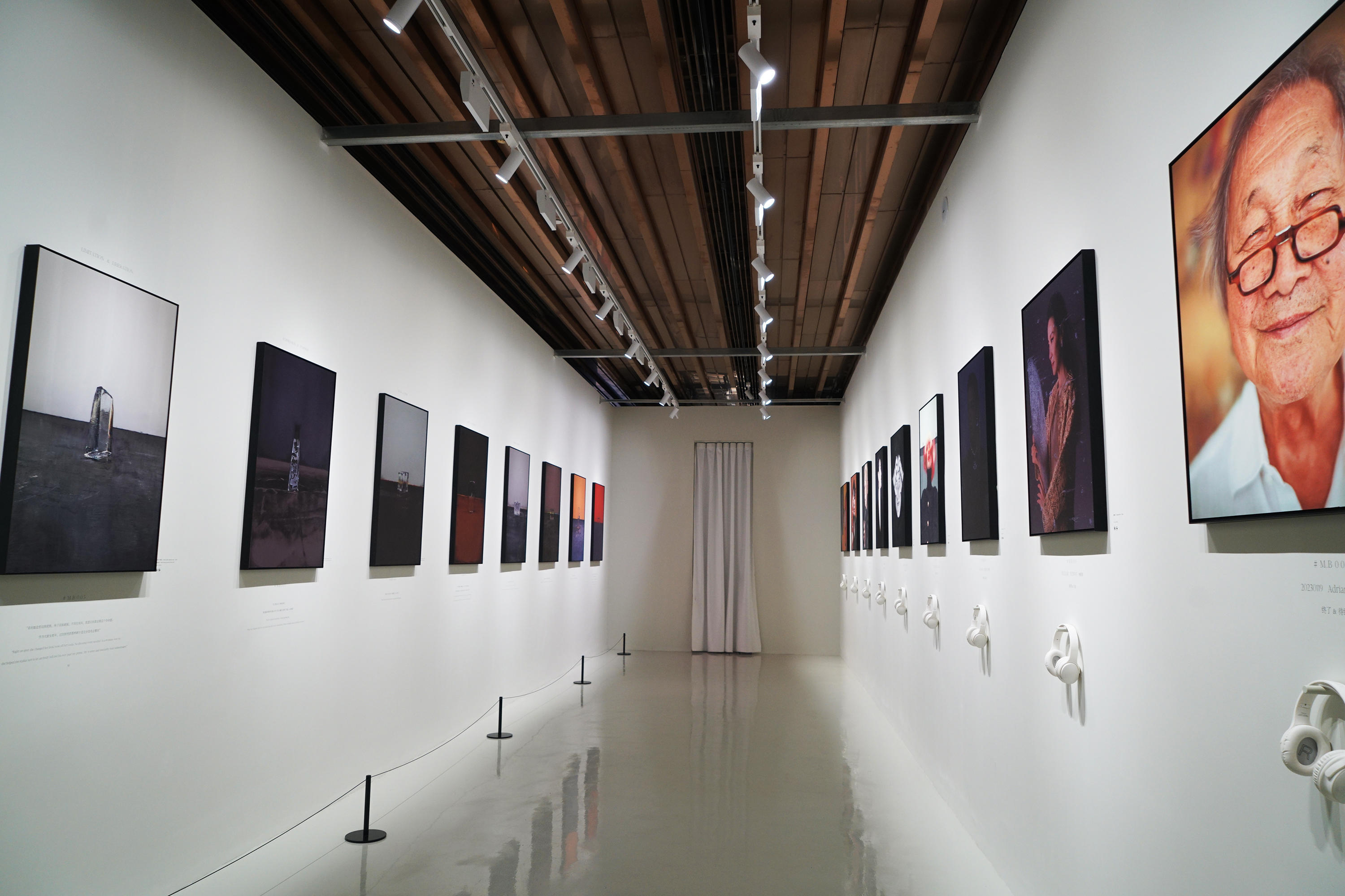 展厅入口处是以巨大实物冰砖堆砌成一座实时融化的装置艺术。“作为一个进行了21年人物拍摄的摄影师,我发现我拍摄的所有人的面孔的形成,在拍摄的那一瞬间,是他所经历的记忆和故事的外在表达。”陈漫坦言,水是信息与能量传递的载体,贯穿着整个展览,水的固态——冰,则在她的整个艺术项目中成为“储存记忆”的符号。