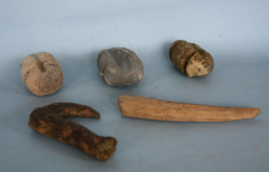 双琚遗址出土的网坠和角钩