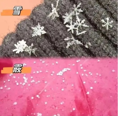据“中国天气”微博表示,要知道眼前的雪到底是不是雪,有三种方法来辨别。雪、霰和冰粒都是固态降水,但是肉眼来看似乎差别并不大,所以有不少网友会将三者混淆。其实从形态、大小和声音就可以将它们区别开来。