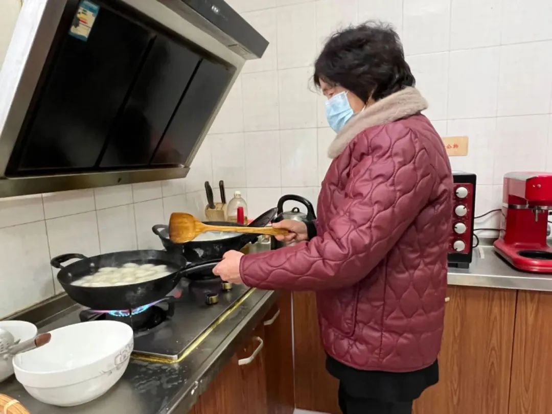 “汤圆烧好咯!大家快来趁热吃!”随着陆阿婆一声响亮的吆喝,雪白可爱的汤圆被盛出锅。大家围坐在一起吃着热乎的汤圆,也勾起了陆秀芬对于元宵节的童年回忆。“嘉定人元宵节会烧贺年羹,我家的贺年羹里会放馄饨和实心的小汤圆,一大锅烧出来味道特别鲜。”陆秀芬说。