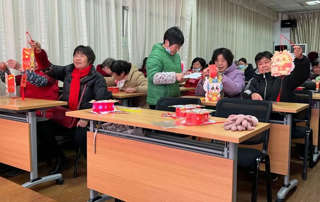 俗话说“元宵节,花灯俏”。吃完了热乎香甜的汤圆,村民们在老师的指导下制作龙年花灯笼。裁剪、折叠、粘贴……一盏盏灵动可爱的龙年花灯笼在村民的手中流光溢彩,洋溢出浓浓的“中国年味”。