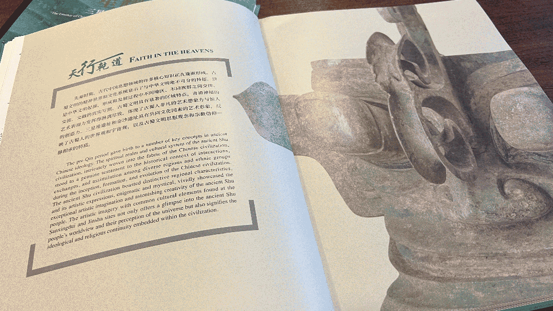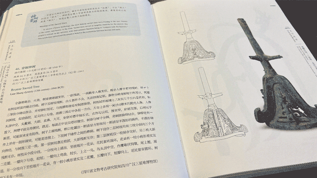 《星耀中国:三星堆·金沙古蜀文明》为上下两册,分“天行乾道”“地势坤物”“人和明德”“尾声”四大部分,收录文物共285件。每件珍品前均有专家撰写的鉴赏文字,对文物作了详细的介绍。