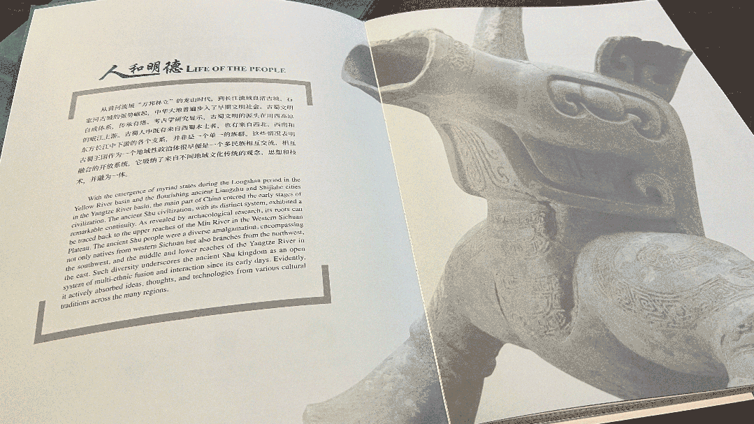 书中收录有成都金沙遗址博物馆朱章义撰写的《成都金沙遗址的发掘与研究》与上海博物馆胡嘉麟撰写的《中华文明视域下古蜀文明的包容性与创新性》两篇研究文章。