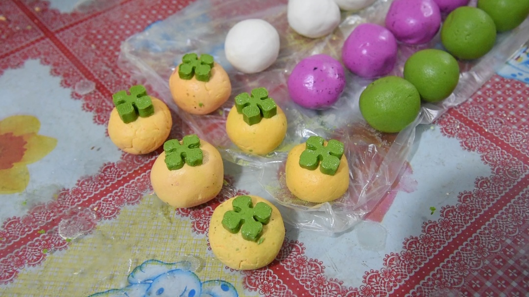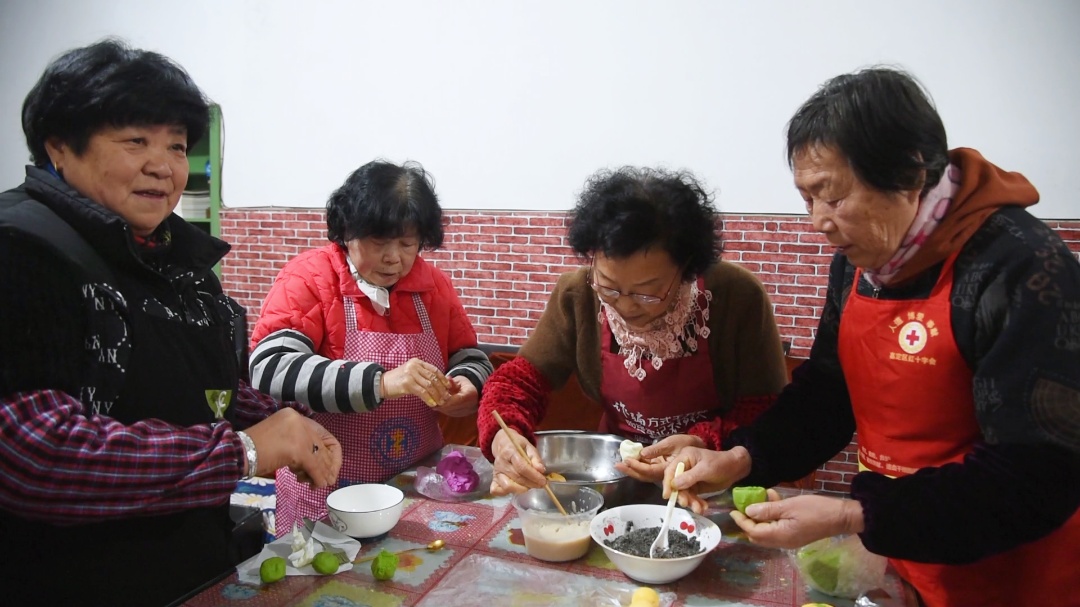 说干就干,大家把胡萝卜、菠菜、火龙果洗净切碎,榨成各色的蔬菜汁,和着面粉做成面团,再用传统的猪油和黑芝麻做馅儿。“汤圆里加一点猪油可以增香,小时候我们都不舍得多放。”“火龙果汁做出来的颜色真漂亮,来年大家一起红红火火。”“芝麻馅儿的最香了,来年大家都芝麻开花节节高!”大家一边忙着包汤圆,一边其乐融融地话家常。不一会儿,一大盘汤圆就做好了。