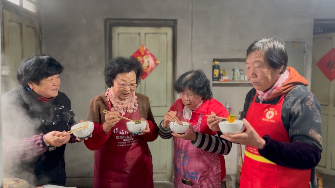 不一会儿,一个个汤圆浮出水面。每人盛上一碗,一起围在热气腾腾的灶头旁,品尝这香甜软糯的美食。“甜甜蜜蜜、团团圆圆,元宵节快乐!”熟悉的声音,熟悉的人,欢腾的灶头间诠释着“远亲不如近邻”的温馨。