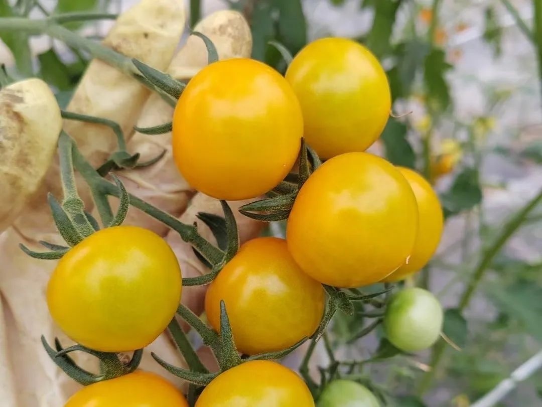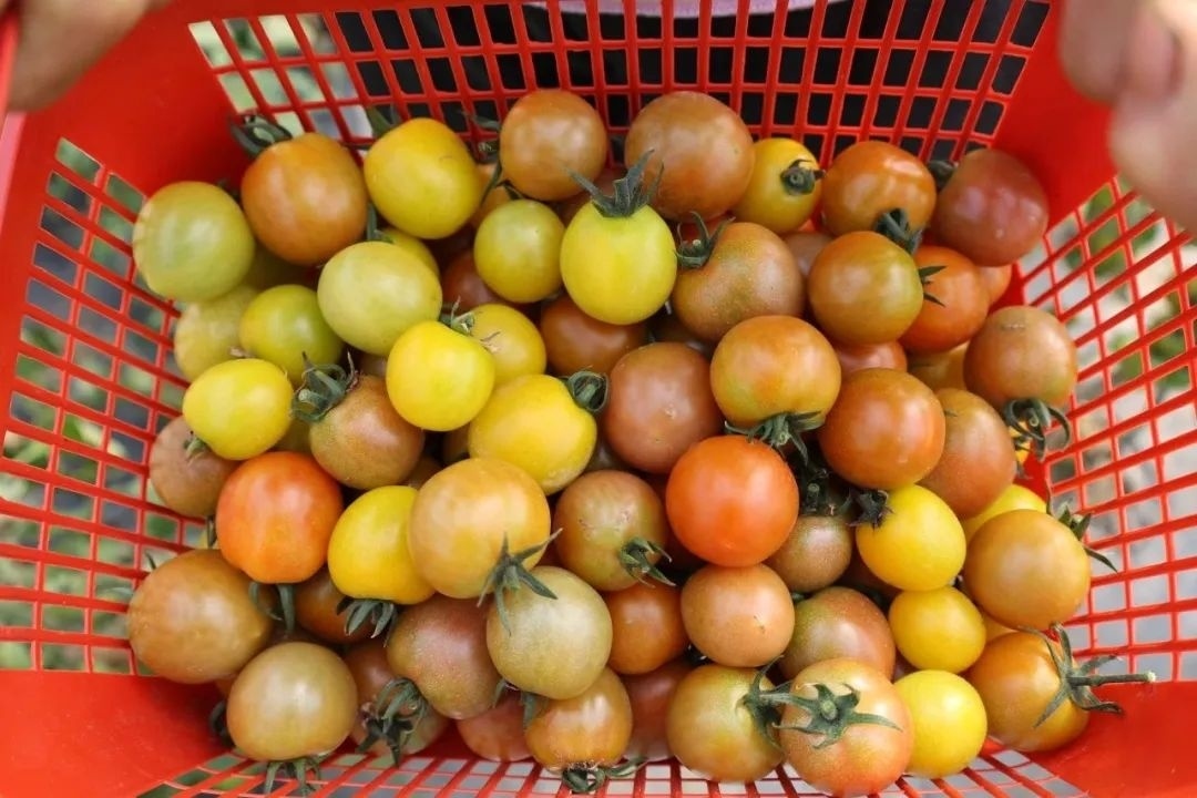 近年来,合作社在探索种植技术的同时,也不断丰富小番茄种类,加强优质番茄新品种的引进与培育,从而提升果实品质。在谈及今年试种的新品种时,张娟说,“以往在种植过程中经常会发现一些植株成熟后的果实容易出现裂果和落果现象,此次选择的新品种不仅颜色亮丽、口感香甜、汁水充盈而且不容易裂果,耐裂性很好”。
