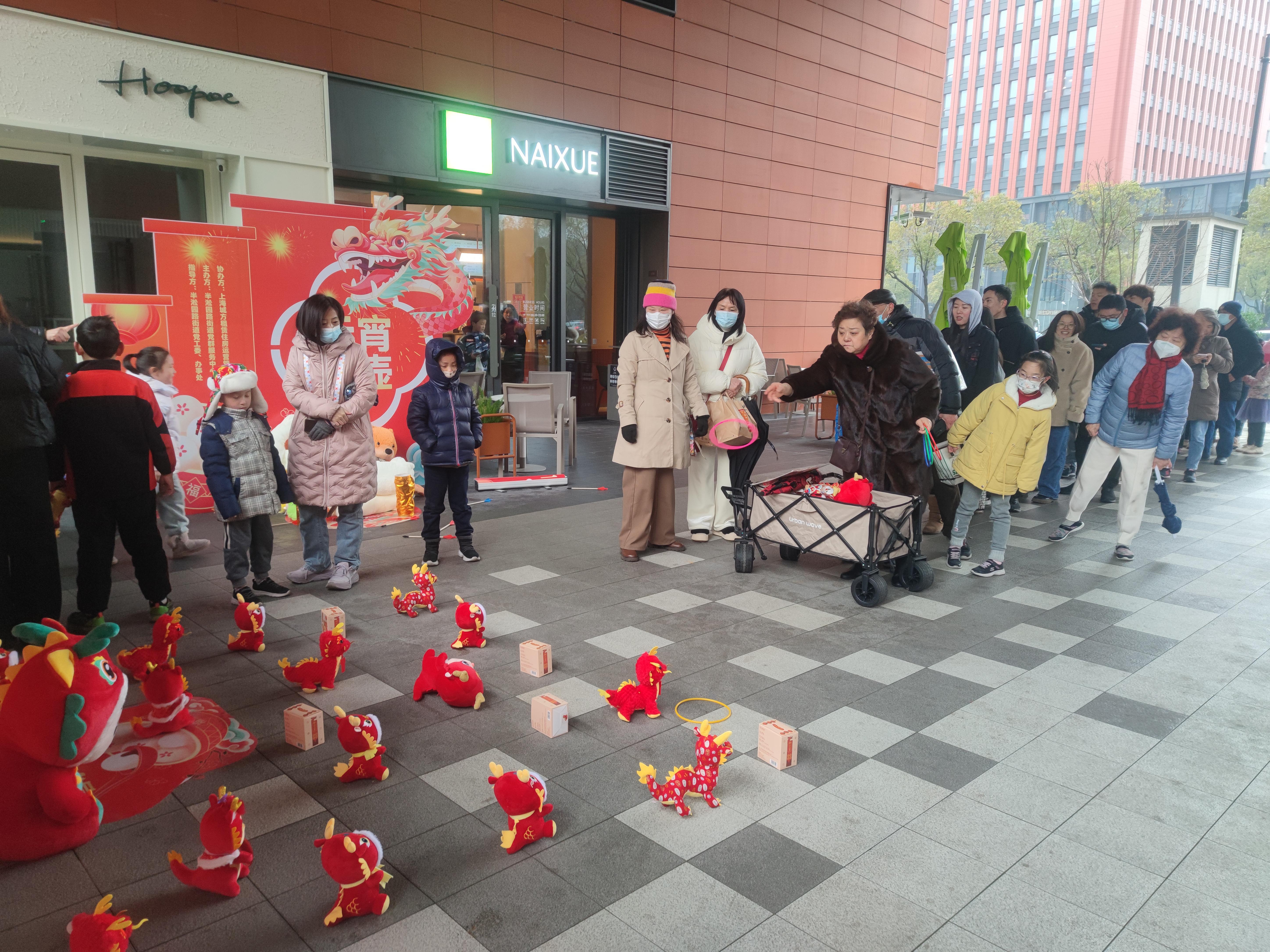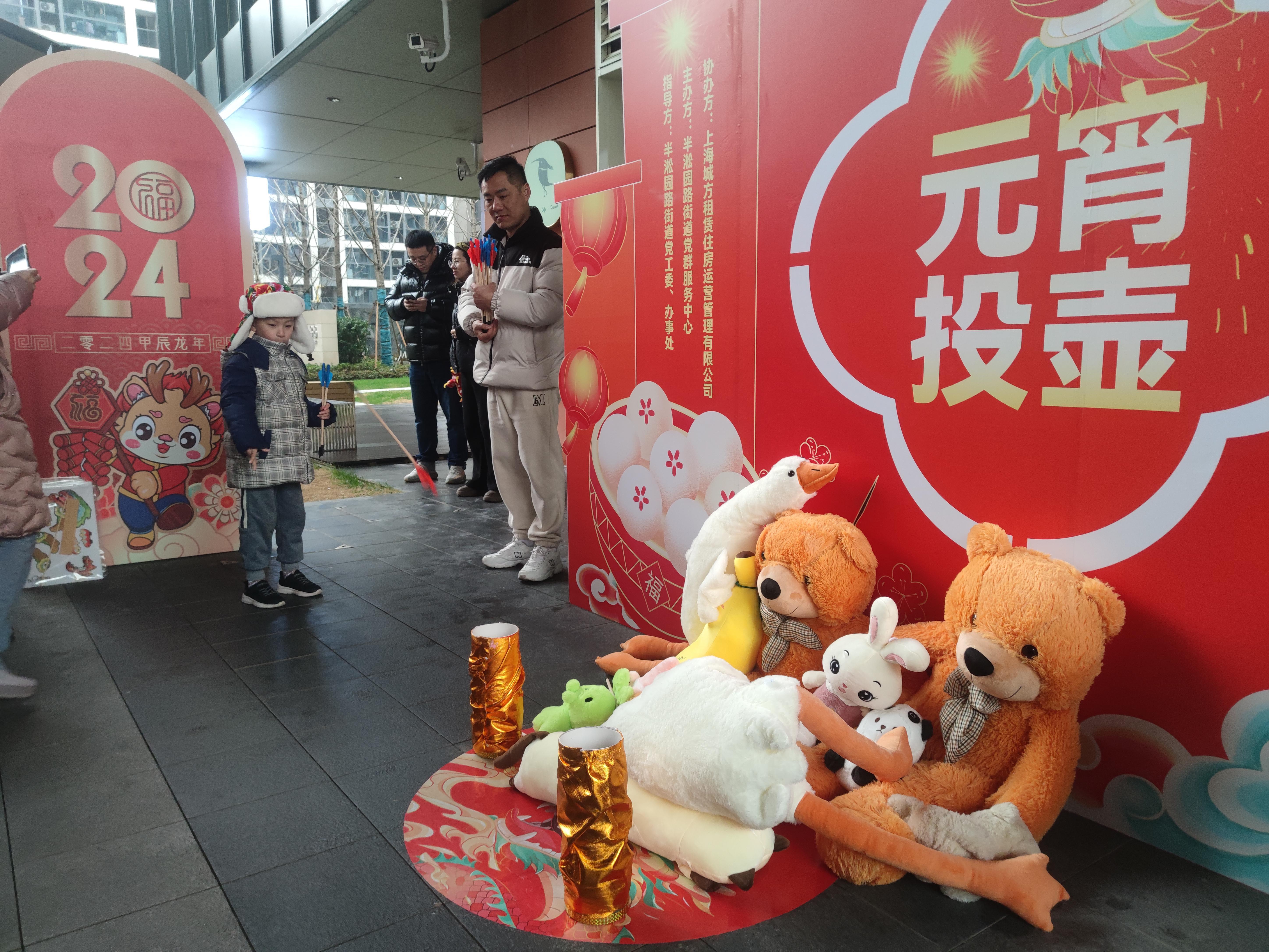 猜灯迷,投壶,投圈。元宵佳节到来之际,一场名为“龙腾虎跃悦元宵”主题活动在半淞园路街道璟湾社区举行。活动吸引了璟湾人才公寓的青年白领、周边小区家庭等共同参与,通过传统民俗文化、游戏等节目欢聚一堂,共度佳节。