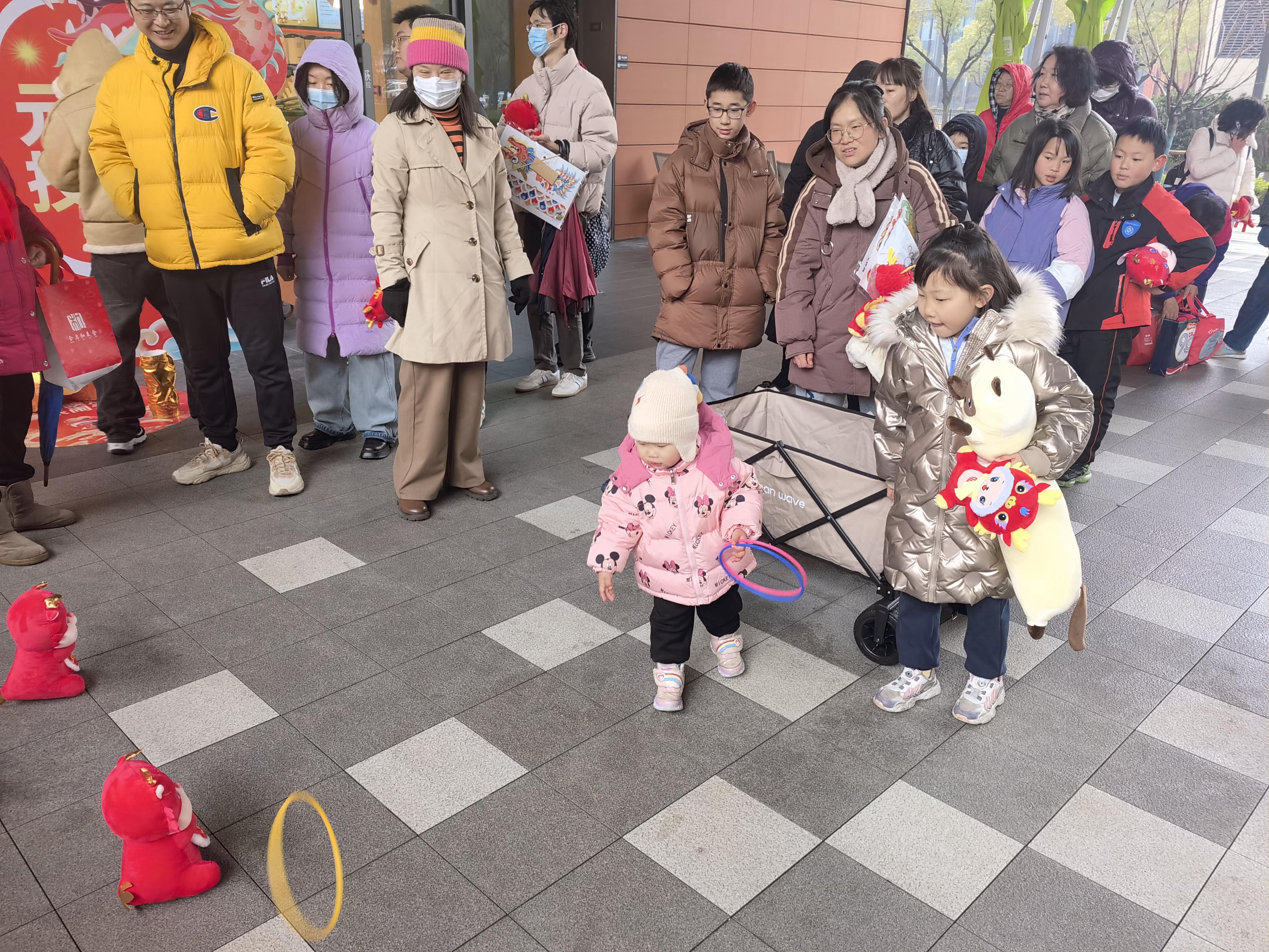 而在幸运套圈环节,大小朋友齐上阵,一个个兴致勃勃,纷纷将手中的套圈扔向心仪的物品,当拿到自己的“劳动成果”时,大家脸上都洋溢着灿烂的笑容,沉浸在喜乐融融的节日氛围里。