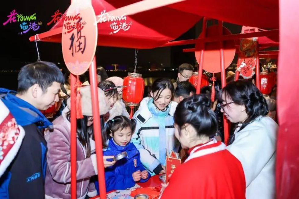 记者看到,滴水湖码头主会场设置了花车市集。既有来自上海天文馆、耀雪冰雪世界、上海海昌海洋公园、中国航海博物馆的互动打卡活动,还有猜灯谜、写福字、姜糖饼挑战、剪纸DIY、祈福灵签、甜蜜美食餐车、汉服体验等多项民俗活动。