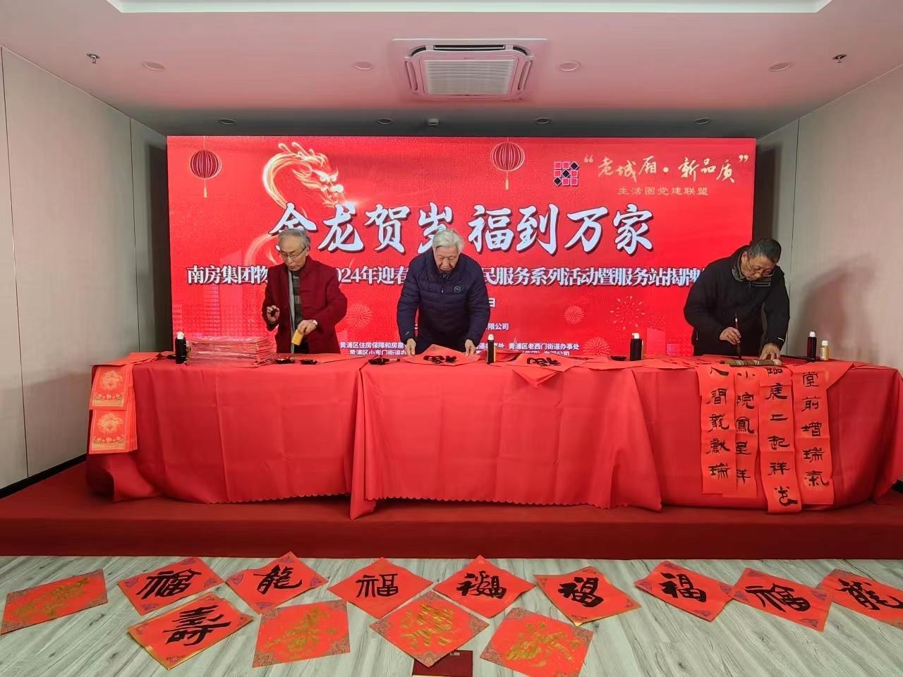 在小东门街道,迎新春活动也在如火如荼进行。融创物业服务集团管理的融创外滩壹号院小区举办了手工插花活动,居民反响热烈,现场仿佛置身花的海洋,为小区环境增添了一抹亮色;绿城物业服务集团管辖的黄浦湾公寓组织了“迎新春、写春联”活动,样式各异的福字和寓意祥和的春联散发着浓浓的年味儿,更添节日喜庆氛围。