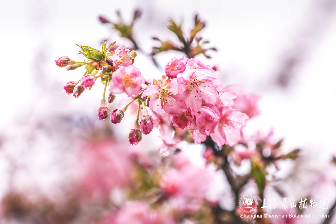 在进入雨水节气前后又经历了一次明显的升温,这加快了河津樱绽放的速度,从芽鳞开裂到花梗伸长,再到花瓣露色,这个过程用了不到10天的时间,使得今年河津樱初花的时间和2020年持平,在辰山引种以来的物候记录中属于仅次于2021年的年份。