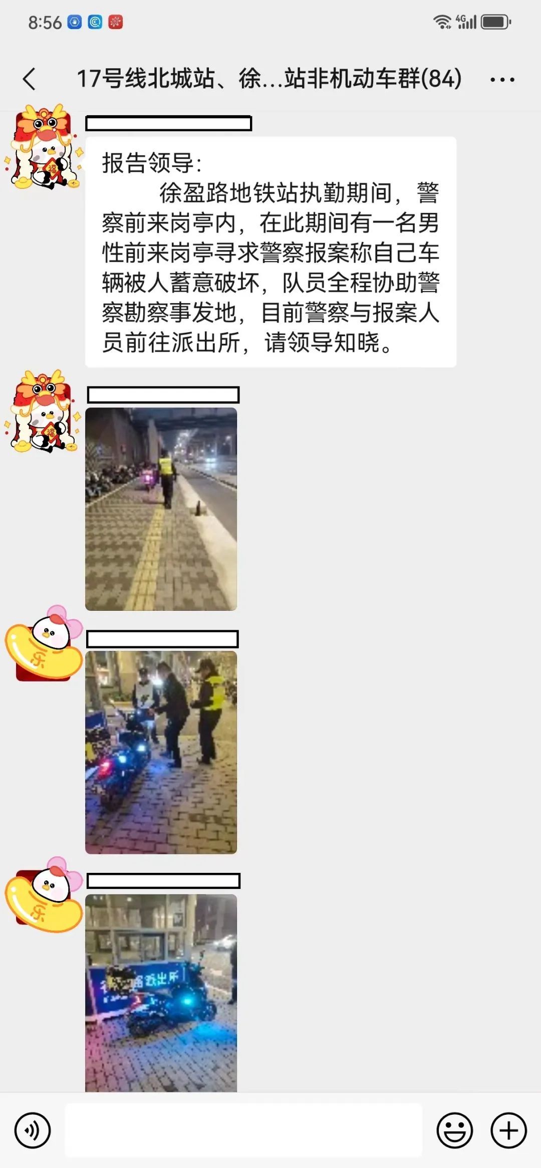 在传统步巡模式凸显成效情况下再增设线上巡检,徐乐路派出所综合指挥室和停车场管理方成立非机动车管理微信群,开展线上增援,及时解决群众所困所急。2023年12月至2024年1月底,发现车辆钥匙未拔情况15余起,未断电情况10余起,车上物品随意摆放20余起,巡检人员将钥匙及物品交由治安岗亭保管,此举获得群众一致好评!