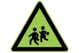 关注儿童出行安全,在学校、幼儿园等儿童经常出入地点前适当位置,设置采用荧光黄绿色底膜的“注意儿童”标志。