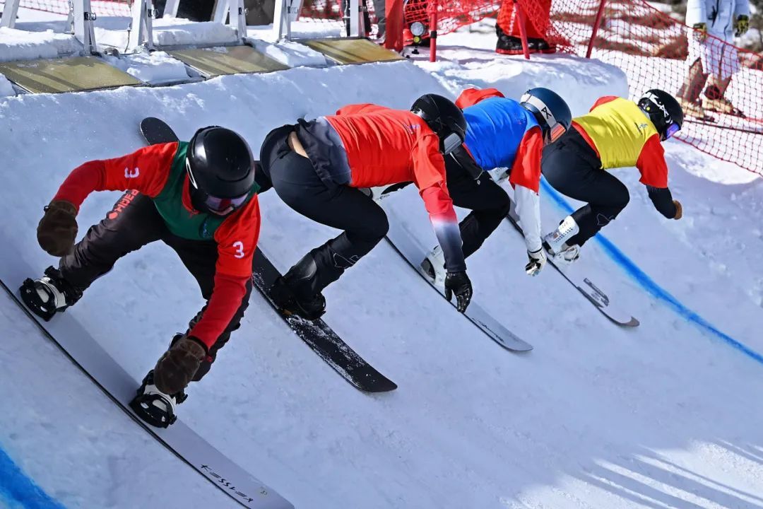 高大礼(左一)在单板滑雪男子障碍追逐决赛上