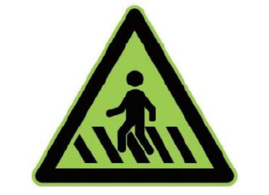 以提升步行安全为导向,在行人密集区域、不易被机动车驾驶人发现的人行横道线前适当位置,设置“注意行人”警告标志,并采用更醒目的荧光黄绿色底膜,增强标志的可视性,提升驾驶人的视认感知。