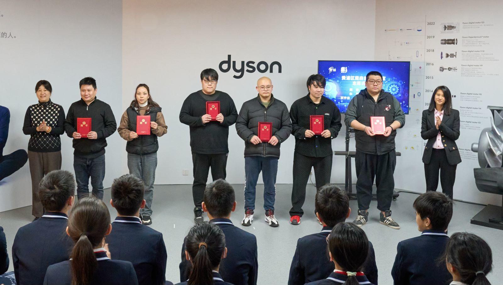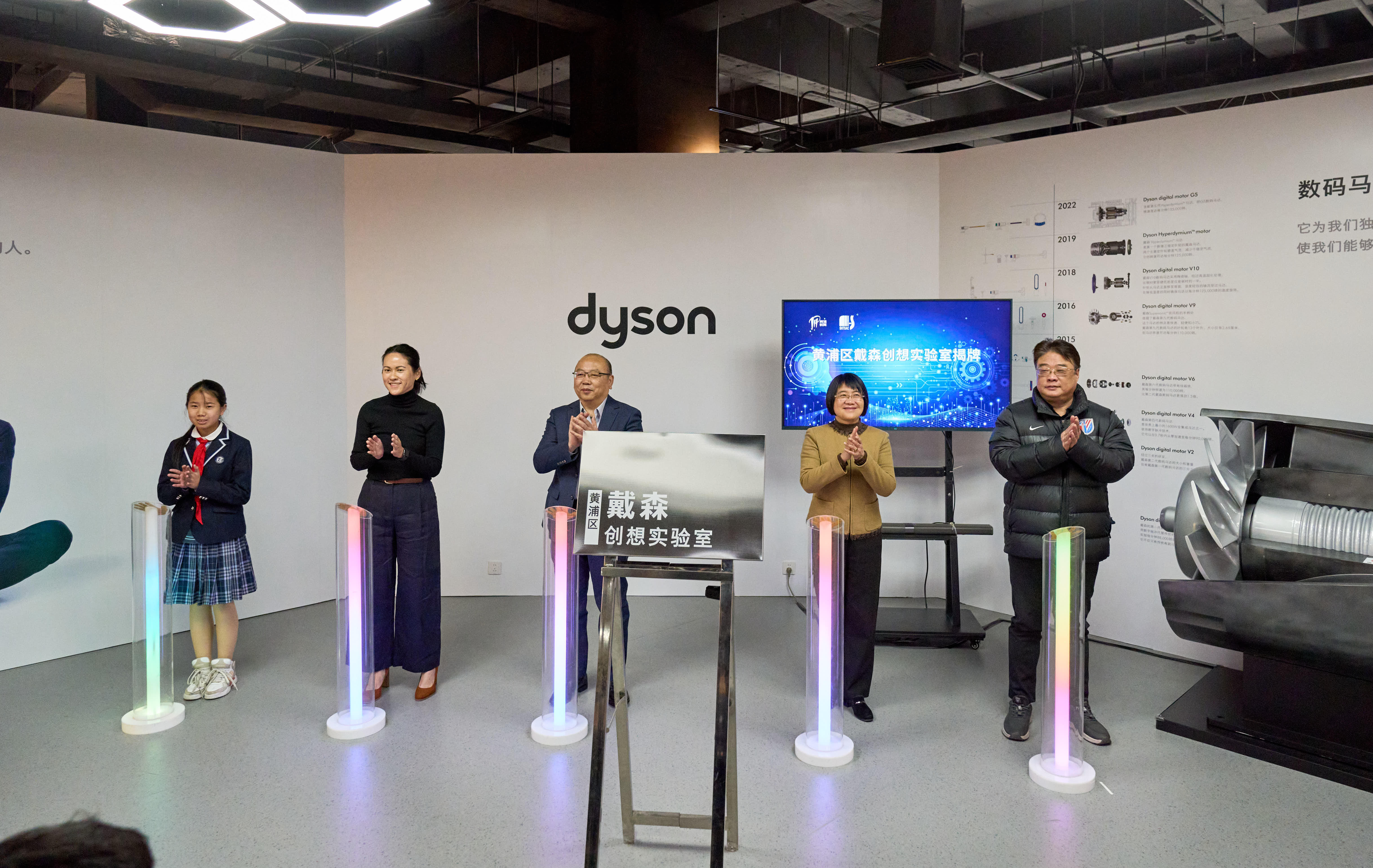 区商务委员会主任金韶靖、区教育局局长郭金华、区青少年科技活动中心主任陈沪铭、戴森全球总部教育与公益项目亚太区负责人柯炎秀及学生代表共同为“黄浦区戴森创想实验室”揭牌,宣布“黄浦区戴森创想实验室”正式成立。