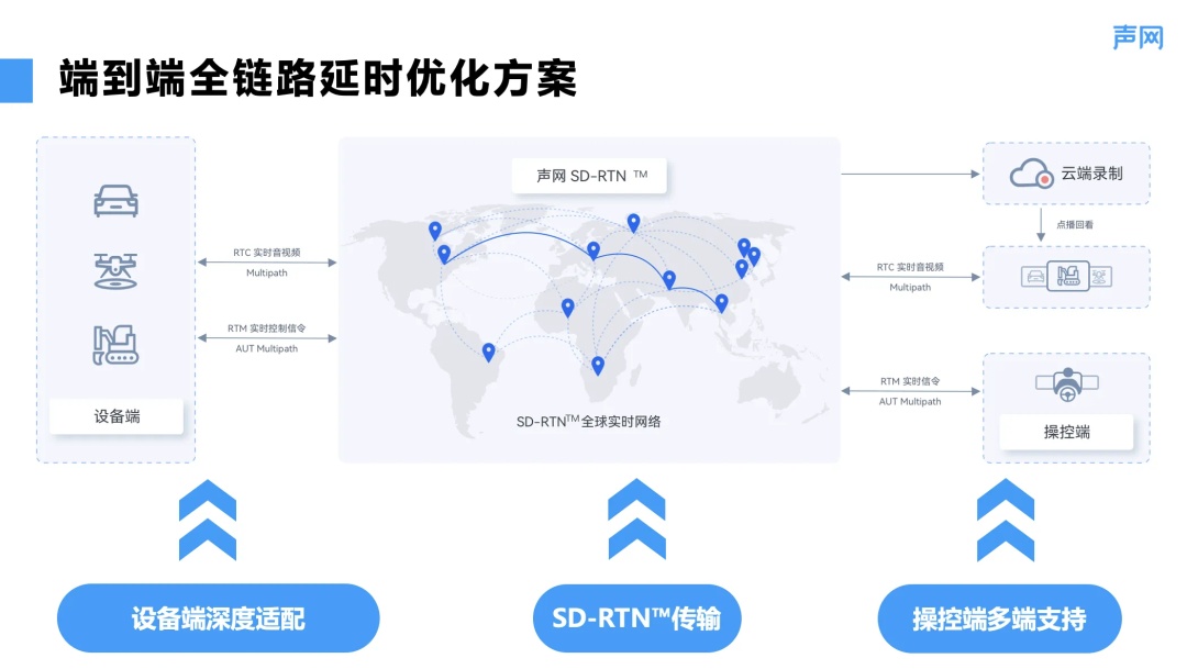 不仅如此,自动驾驶清扫车企业除了国内,也会在国外如中东、欧洲上线运维中心,而在海外地区的音视频+信令传输,往往会遇到无边缘节点覆盖、弱网卡顿等难点,这对于无人驾驶清扫车这种实时精度要求较高的技术场景来说,会直接导致服务不可用、车辆安全性无法保障等严重问题。