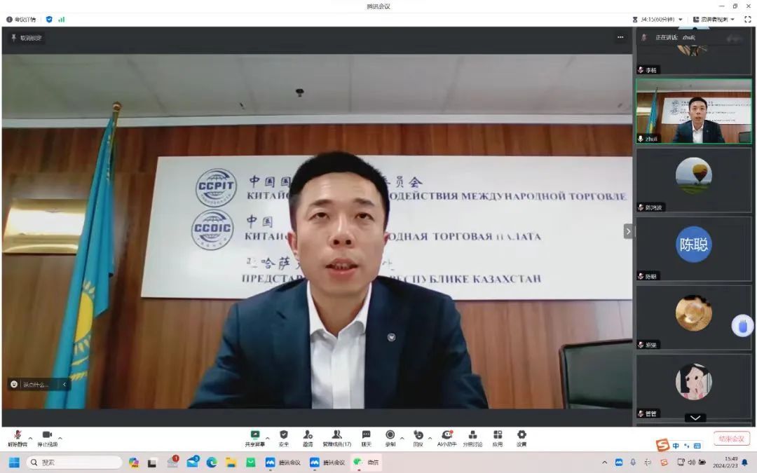 中国贸促会(中国国际商会)驻哈萨克斯坦代表处首席代表陈鸿强向各企业代表介绍了哈萨克斯坦的营商环境、产业结构、政府优惠政策以及中哈两国国家交流互通和经济往来情况。今年4月,当地将举行哈萨克斯坦机械展览会,同期举行的还有哈萨克斯坦机械第十二届论坛,该论坛至今举办了11年,已成为哈萨克斯坦和外国领先工业企业负责人、政府机构、商业协会代表的重要对话平台。