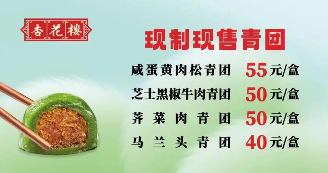 “元宵节过后第二天,我们就开始卖青团了。”杏花楼相关负责人告诉记者,青团所传递的不仅仅是一种美味,更是一种传统文化和历史的呼唤,同时,为赋予这一限定美食更多活力与持久性,近年来,杏花楼坚持守正创新,为更多消费者演绎一场舌尖上的“春之圆舞曲”。
