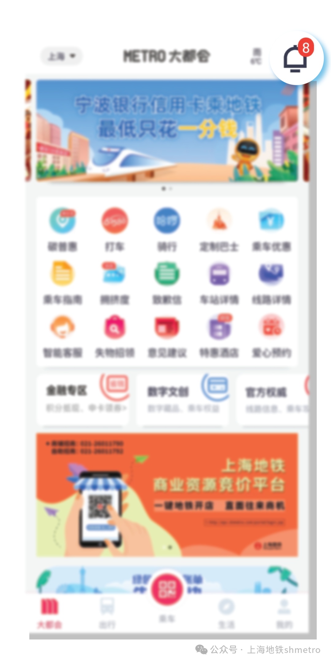关注“上海地铁”微信服务号