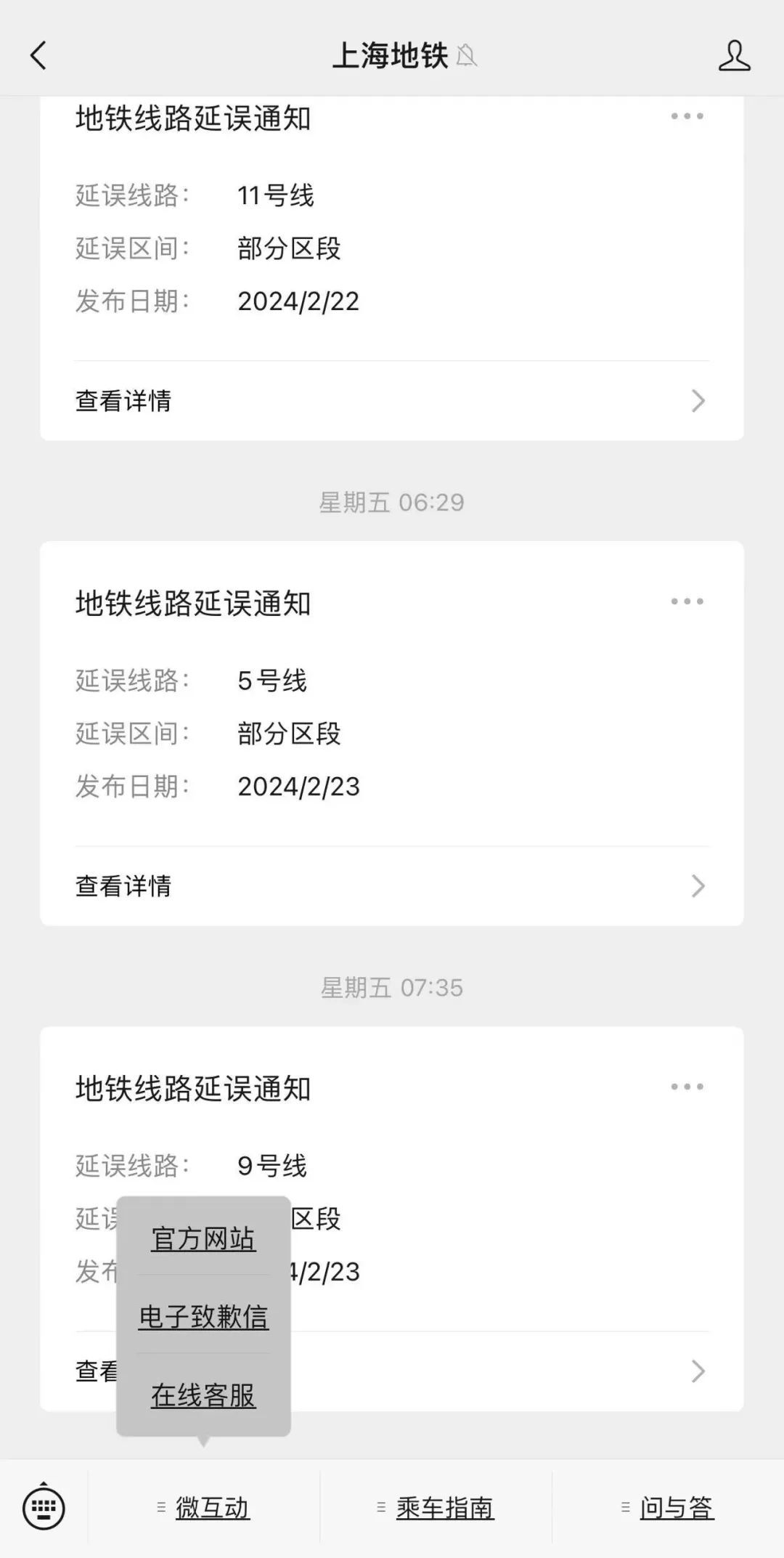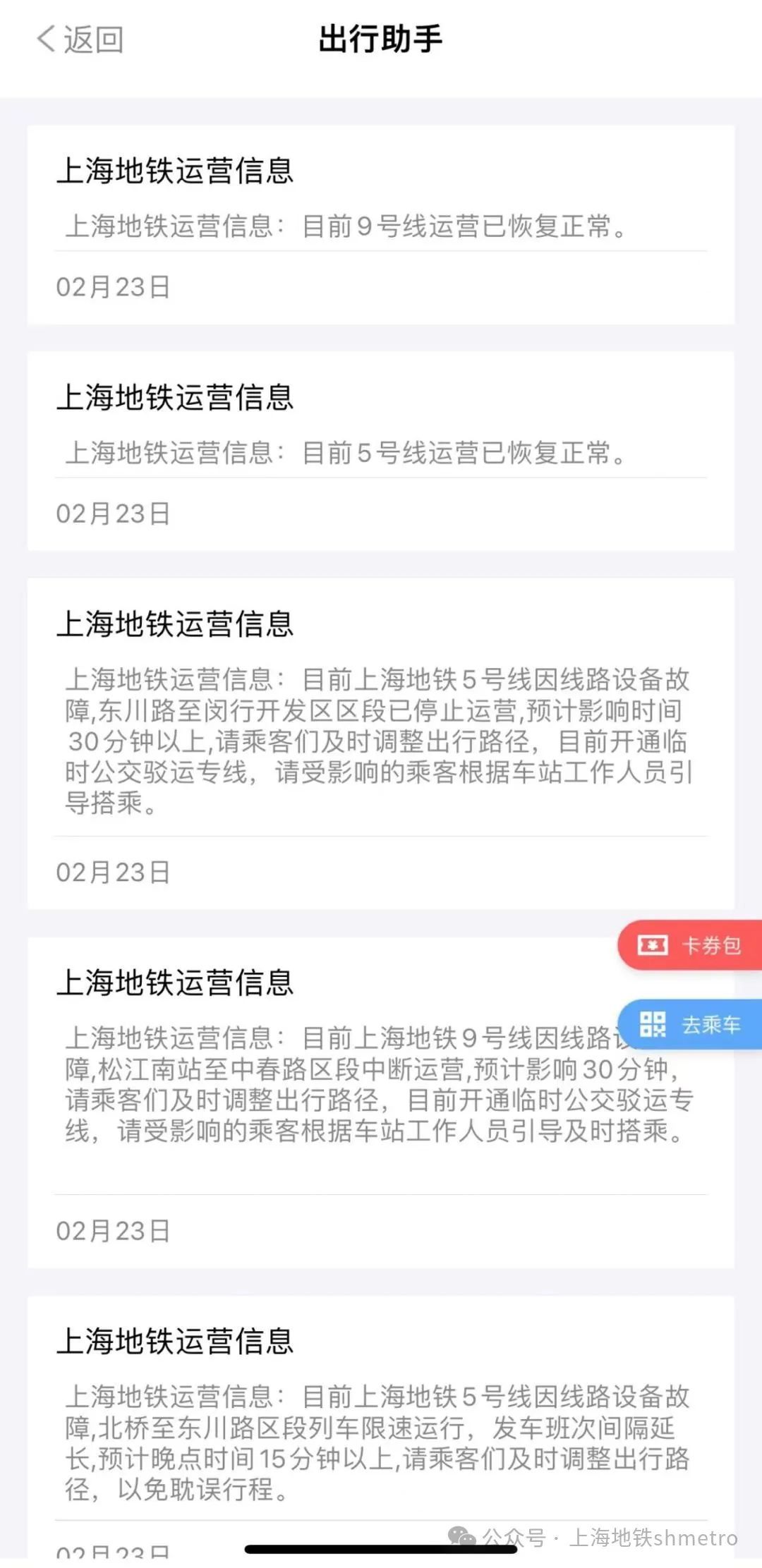 当有突发情况影响正常运营时,上海地铁将第一时间通过以下渠道方式对外告知: