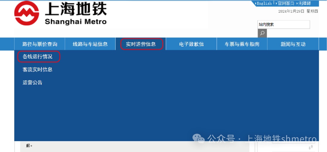 上海地铁官网运营专页