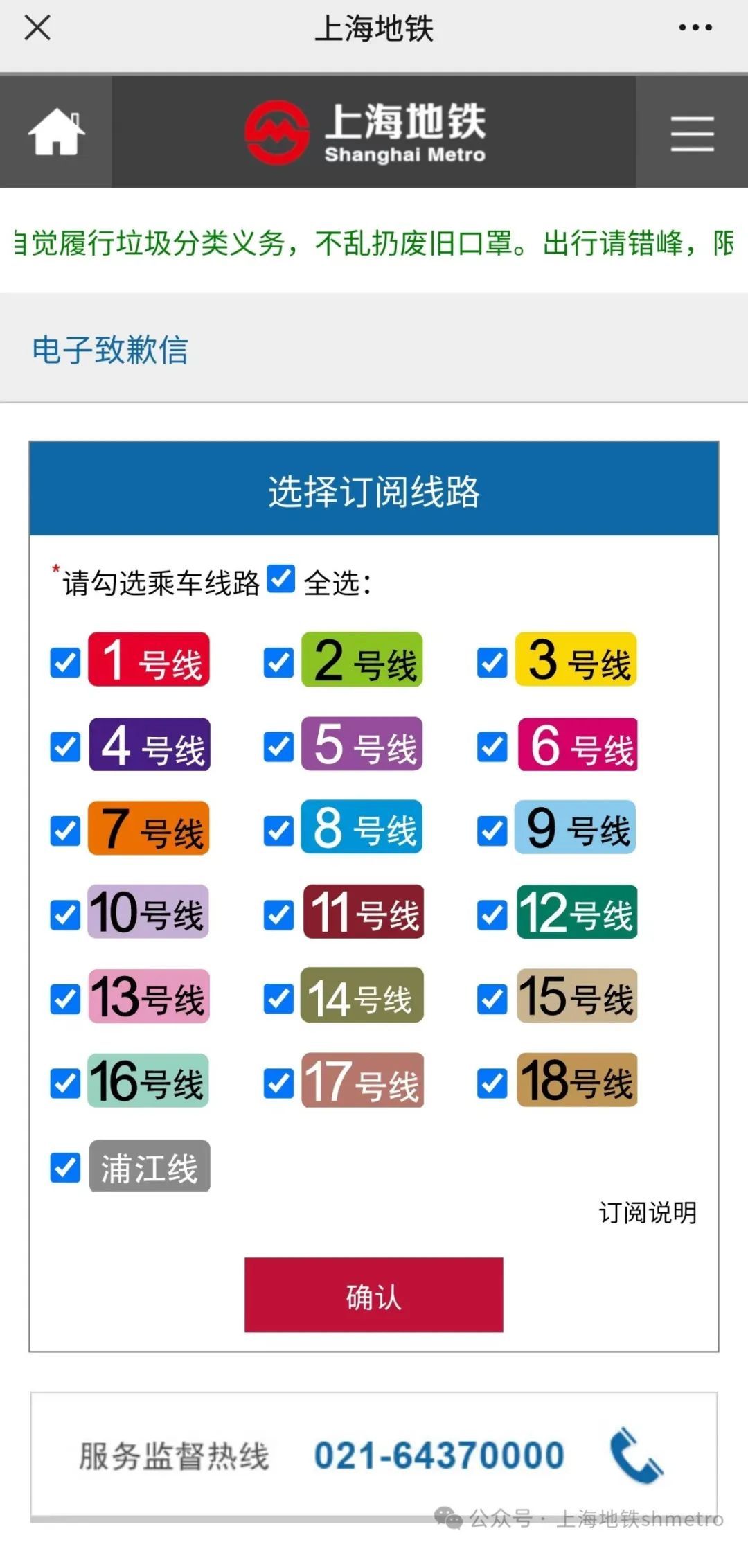 上海轨道交通网络服务监督热线
