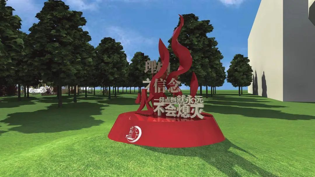 信念雕塑的核心元素是一团象征着理想与信念的永恒之火。火焰如澎湃的热血,不仅点燃了每一颗梦想的火种,更象征着中国共产党“对理想永不放弃,对信念始终坚持”的执着追求。