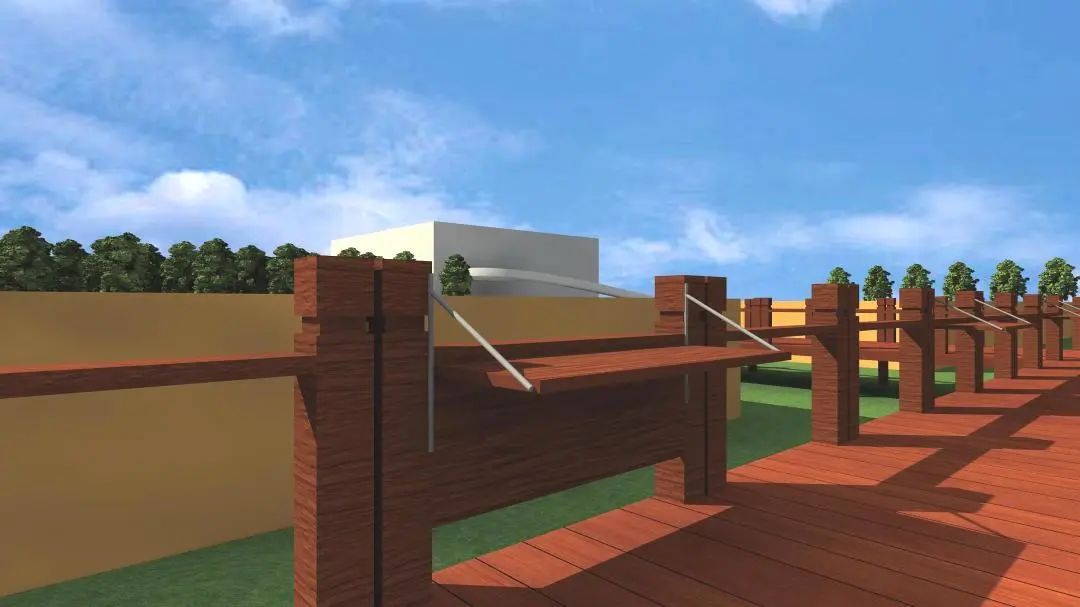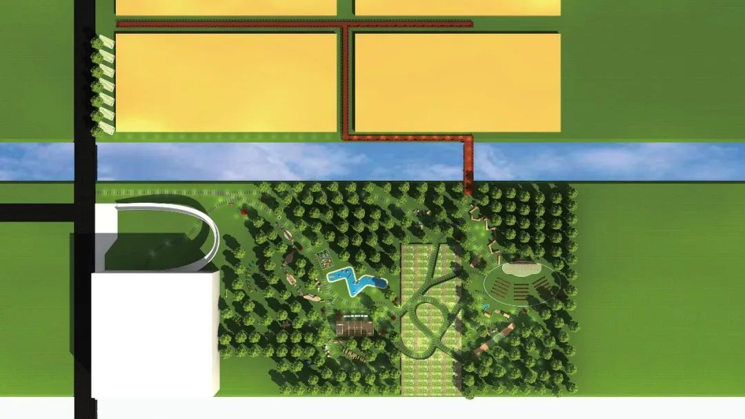 水田集市改变现有参观动线,参观者将从坡道进入展厅参观后,由核心区域至河北侧的水田集市出展馆主建筑,集市设置于田埂路上,共设有百余个当地村民的特色农产品、手工作品摊位,进一步带动经济效益提高周边村民的收益。