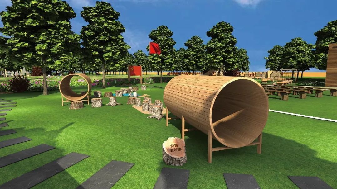 核心区域巩固提升工程设计理念源于红军万里长征,以忆红居老馆1.0版本的迷你长征路为基础设计,包含了信念雕塑、初心文创小屋、红军长征路8大装置、树林课堂、水田集市等多个功能性区域。