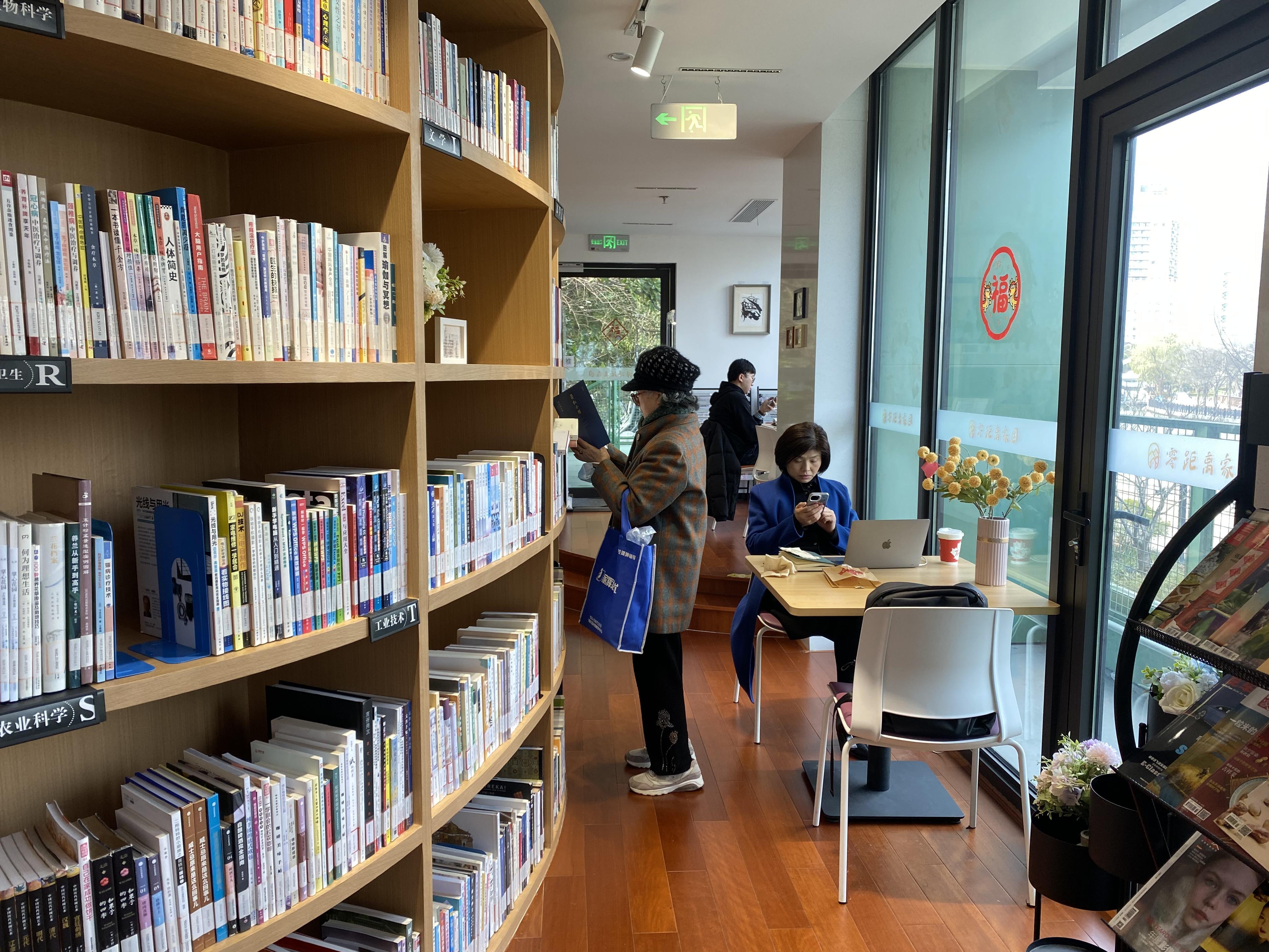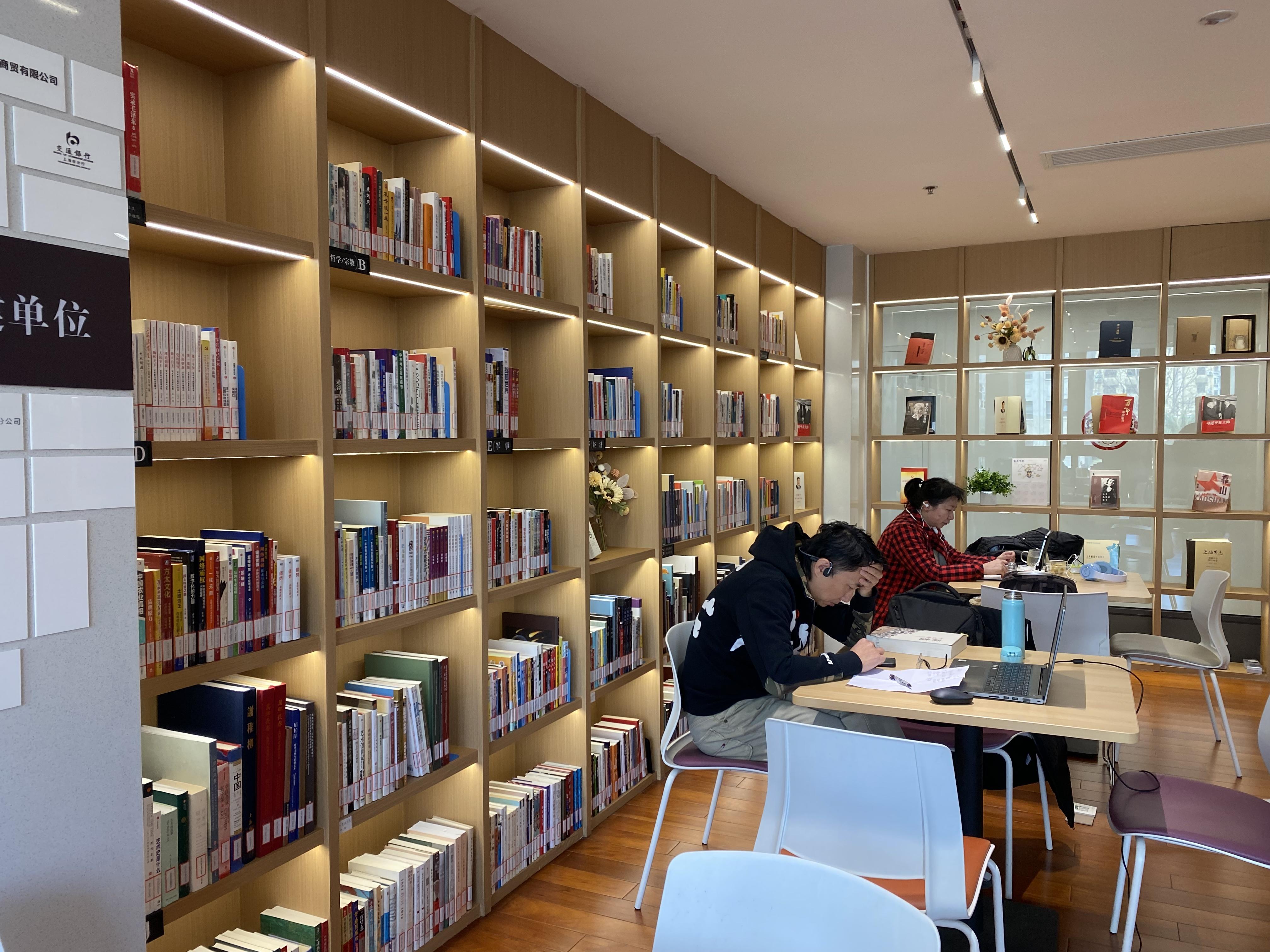 填饱肚子以后,去隔壁的社区图书馆看看书,休闲片刻一定是不错的选择,图书馆联合读者文化创意公司打造的“读者·苏河”文化空间,向市民游客提供免费借阅图书服务,以及讲座、读书会、人文行走等活动。更值得一提的是,半开放式景观位绿植环绕,微风习习,让这一处阅读空间平添一些雅致韵味。这不,不管任何时候,靠窗边的苏州河景观位一定是最先坐满的,不少人们在这里看书、用电脑办公,或是刷刷手机,累了的时候,抬起头就是苏州河的绝美风光,这份舒适、惬意,也吸引不少年轻人到这里来“移动办公”。还有充满卡通元素的少儿阅览区,图书馆的受用人群完全覆盖了所有年龄段。