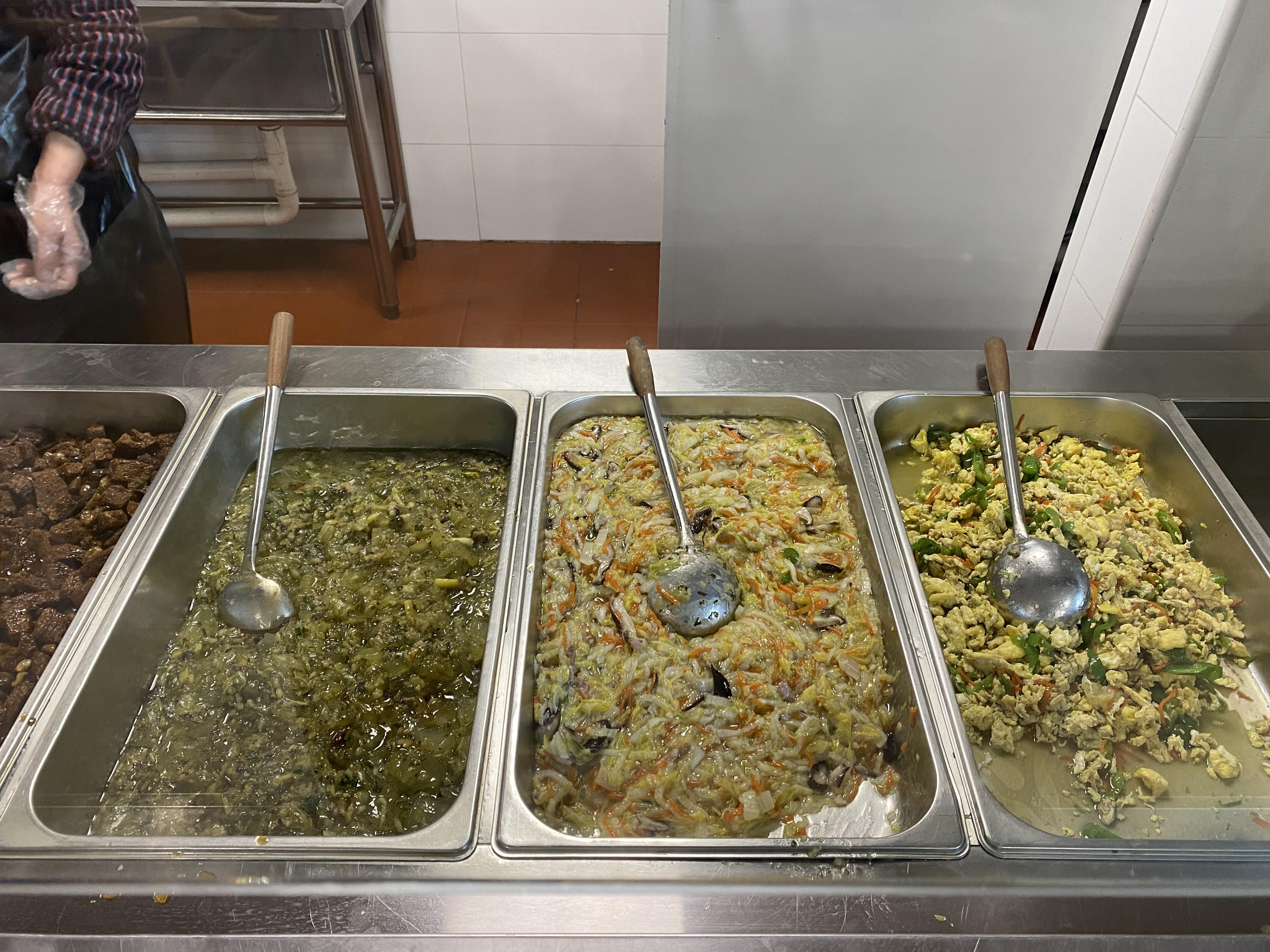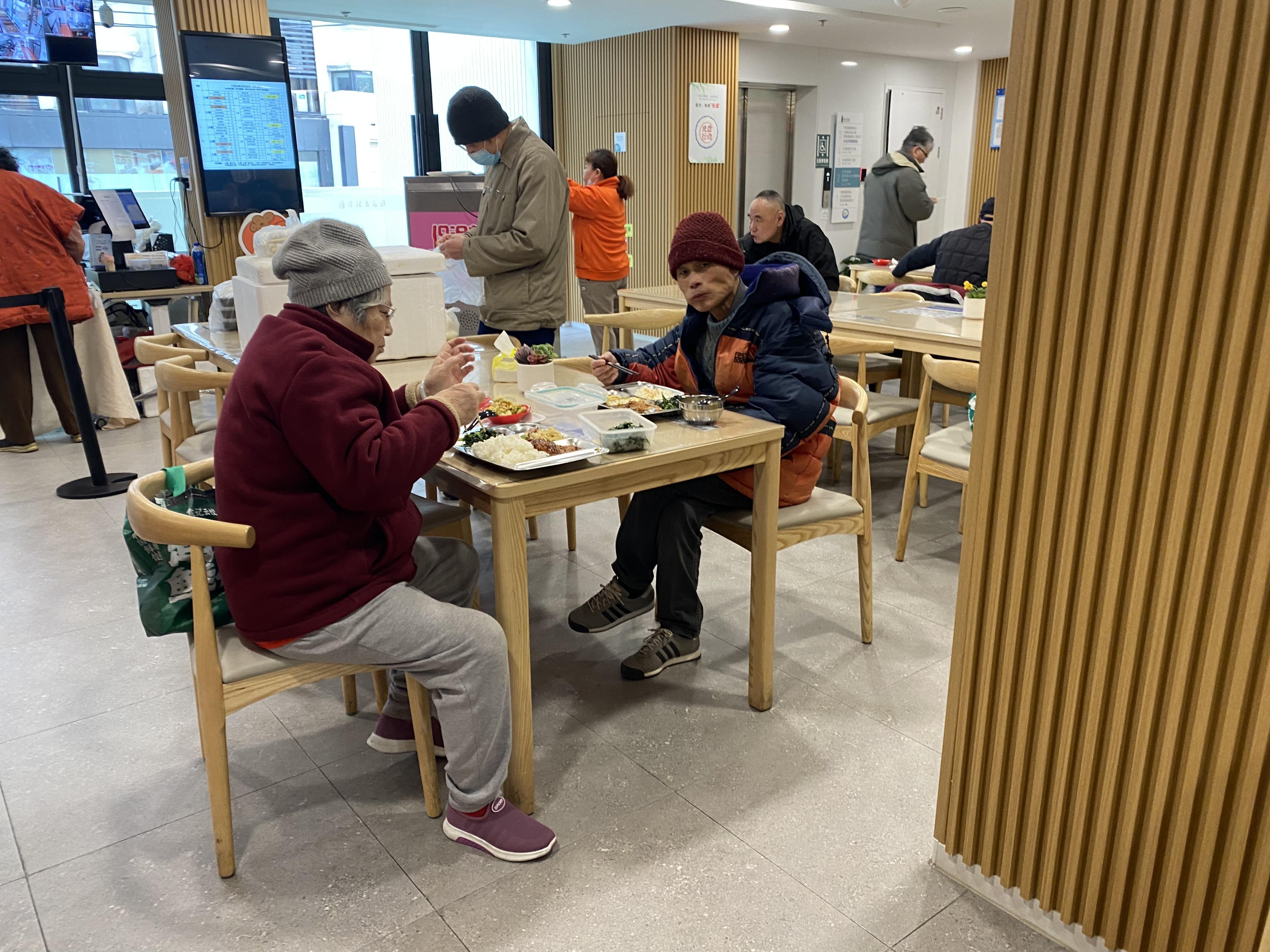 二楼的社区食堂应该是老人们最喜欢的地方之一,每天上午十点多开始,陆续就有居民们过来堂食和打包饭菜,凭敬老卡,原本优惠的价格还能再打个折,点菜的时候几乎不用纠结,想吃什么点什么,两大荤两素这样的“顶配”,也就20块钱,这样的性价比,在苏州河沿线应该是找不出第二家。