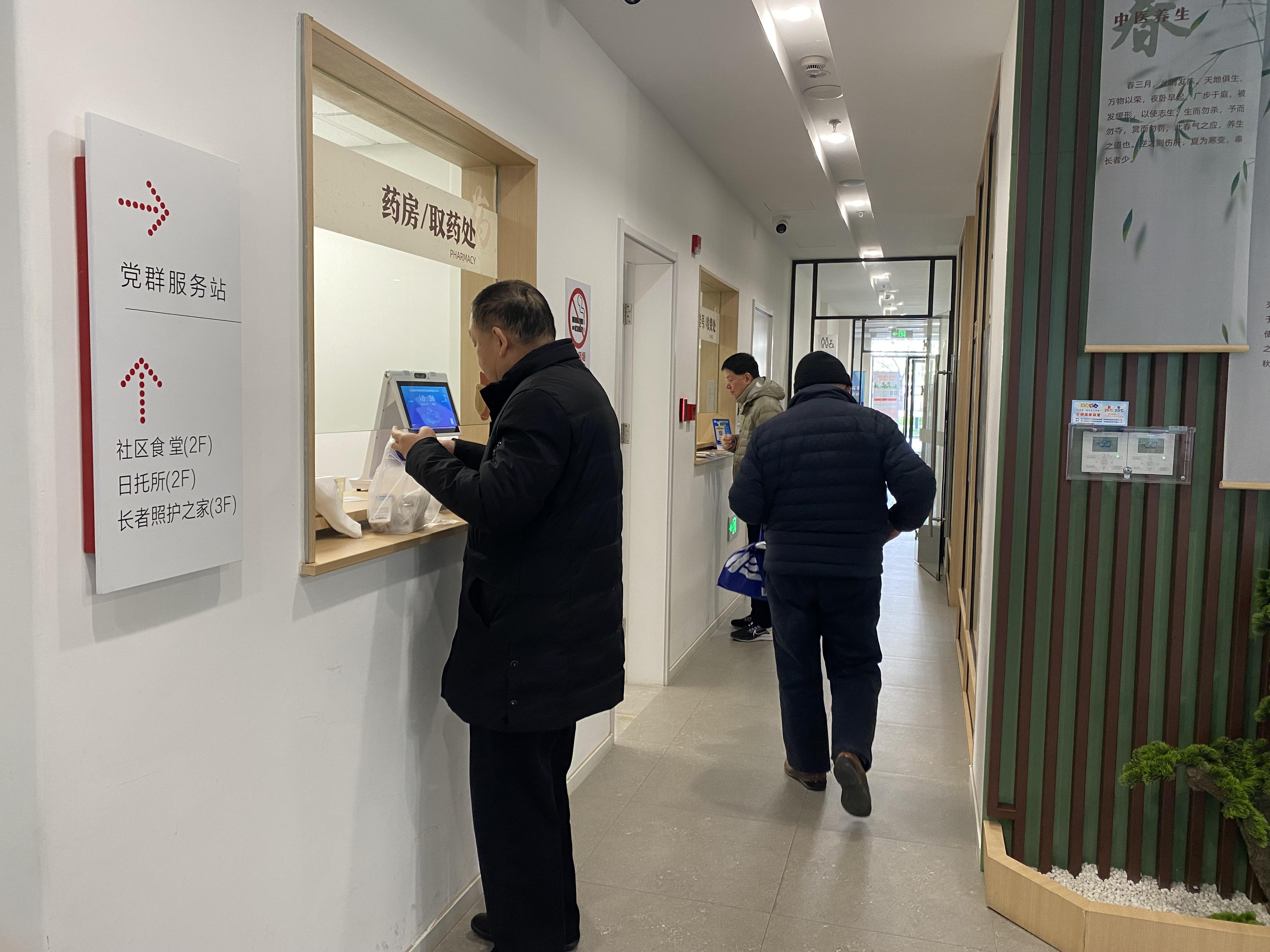 一楼的社区卫生服务站功能也已经启用,对于周边居民们来说,有什么小毛小病,或是需要配药,只要在去食堂吃饭前后,跑一趟楼下的诊室就行。这里有中医诊室和全科诊室,可以提供中医理疗项目,还有免费的测血糖、量血压、体质测试等服务,十分便捷。