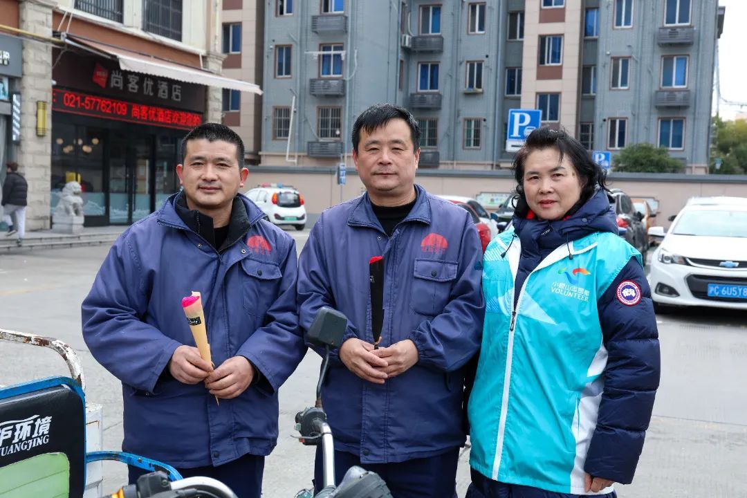 活动现场,九州幼儿园小朋友向8名志愿者代表献花,随后,志愿者又将鲜花献给了辖区派出所民警、城管队员、消防员、新就业群体、环卫工人、物业保洁员等一线工作人员,向他们表达了祝福。