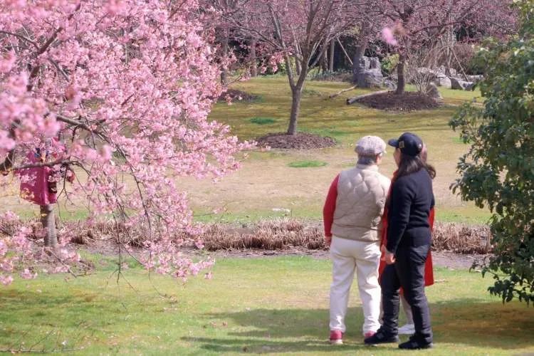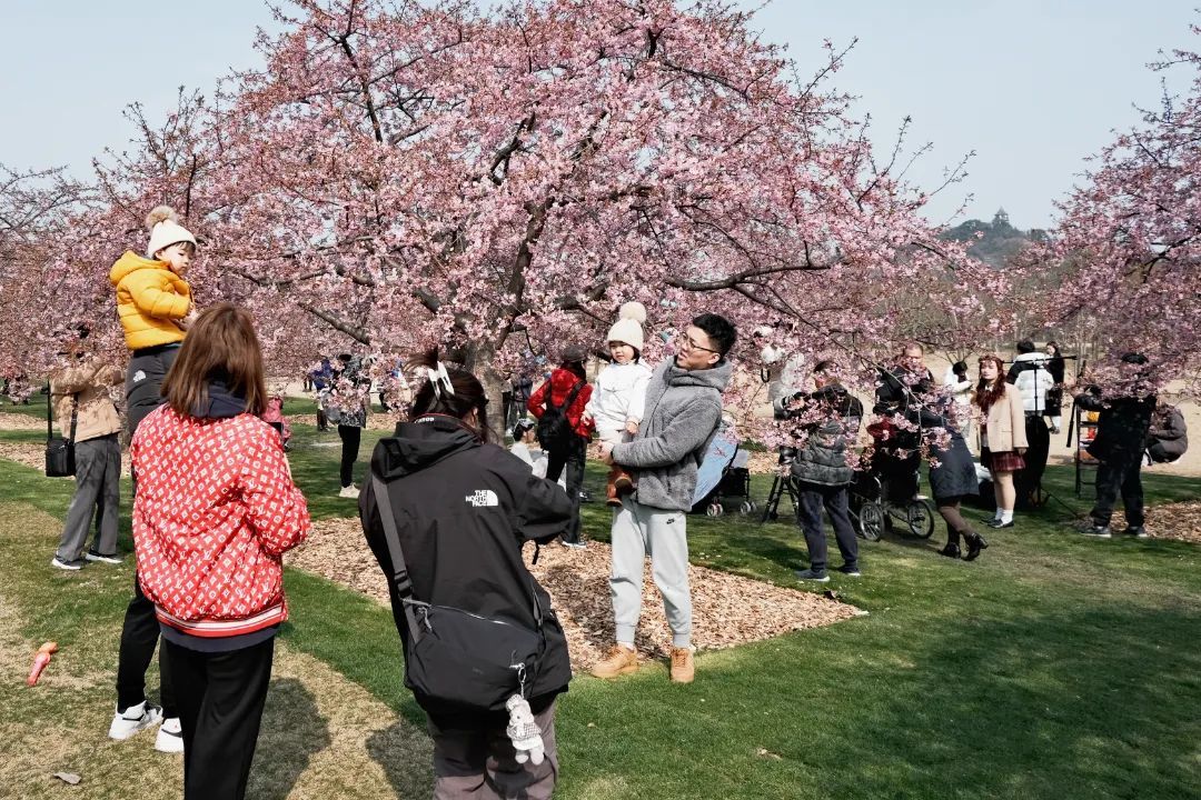 记者从园方了解到,每年2月底3月初,园内的河津樱次第开放。目前开花量已达35%,预计在3月6日左右正式进入盛花期。早樱盛开后,更为淡雅的染井吉野将很快接力,在3月下旬带来一片雪白无瑕的樱花盛景。