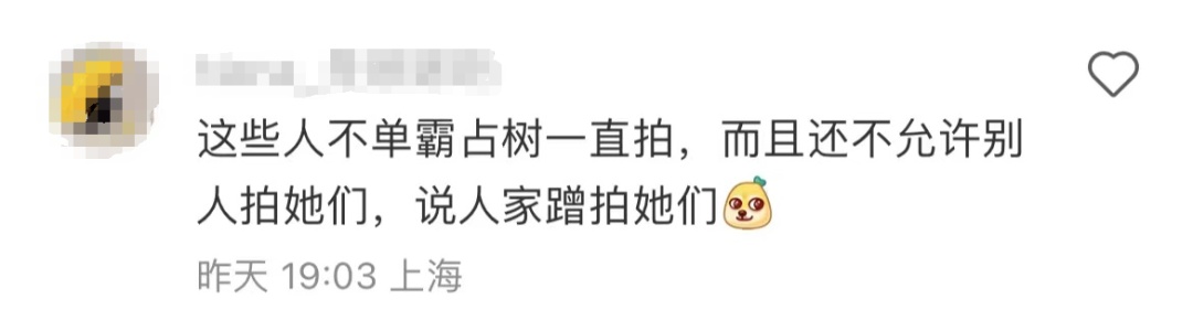 遇到“爬梯子”的小姐姐们,保安也会提醒,但是反光板、梯子等都很容易就收起来,保安走了,可能又会拿出来。此外,影响植被和环境的事情也屡有发生,甚至不乏因为“抢占”一棵树的最美机位发生冲突的情况。去年,不少公园管理者们就发出呼吁,任何游客都应该文明游园,共赏美景。