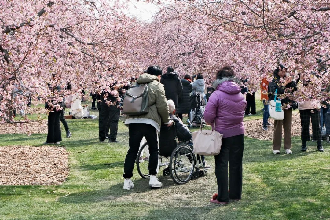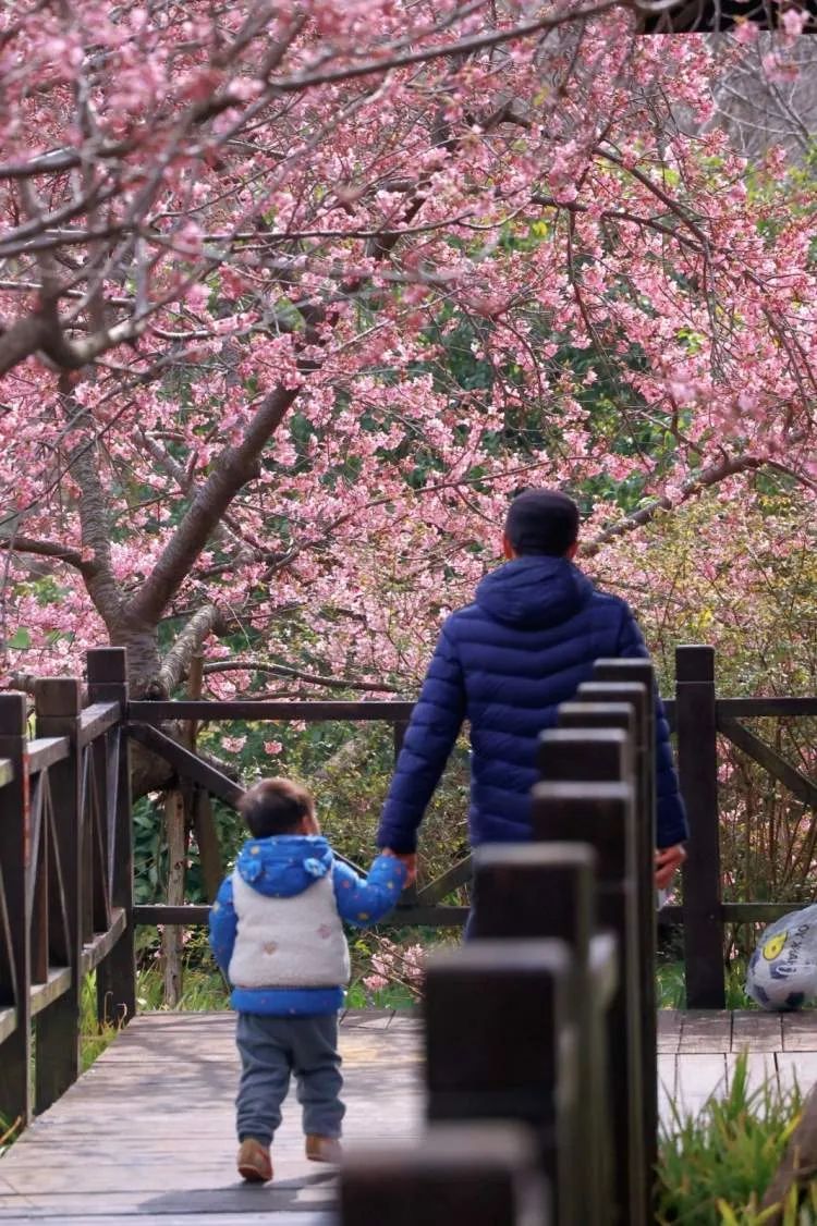 在辰山植物园,河津樱已进入最佳观赏期,吸引了不少“追花人”漫步其中,享受畅游花海带来的乐趣。