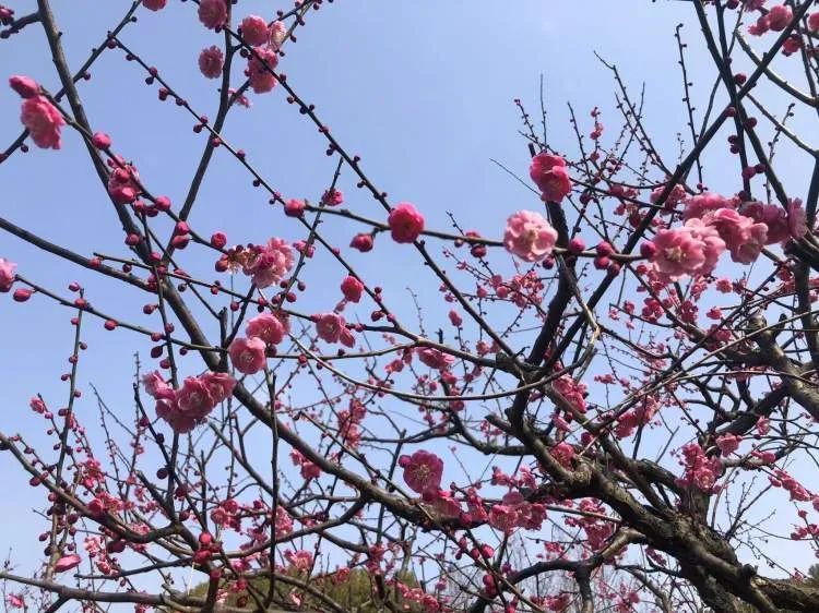 今年春节假期前半程的晴好天气,催开了梅花,但是没想到,开启后半程开始,连续低温阴雨,已经开了的梅花仿佛加入了“一、二、三木头人”游戏,“僵持”在那里不动了,由此,花期得以延长。