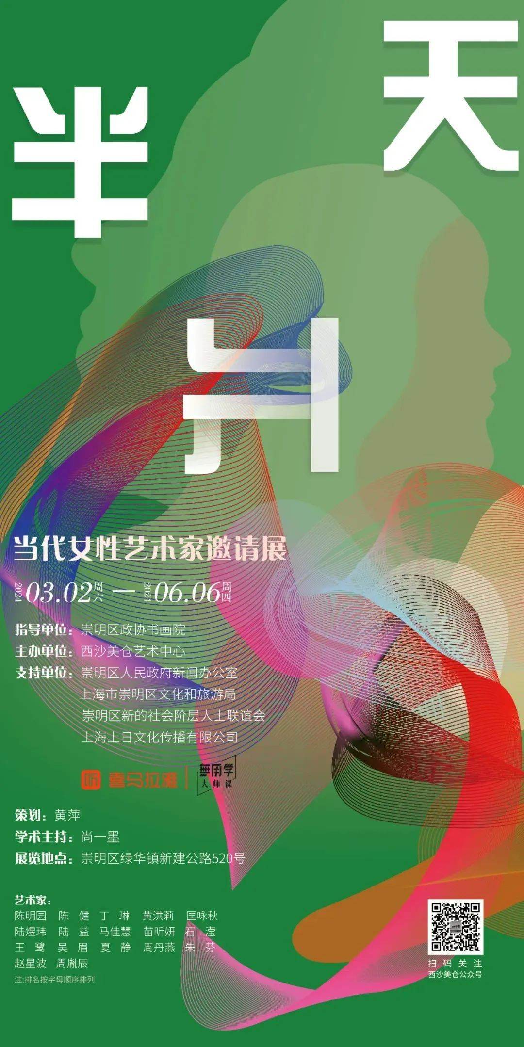 此次画展由崇明区政协书画院指导,崇明区人民政府新闻办公室、崇明区文化和旅游局、崇明区新的社会阶层人士联谊会、上海上日文化传播有限公司支持,将持续至2024年6月6日。