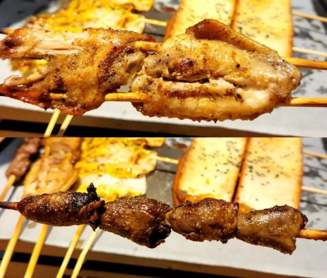 阿依古丽烧烤大排档位于水城路上,毗邻水霞公园,附近就是美食云集的仙霞路,崭新的门头、明亮的招牌在晚上吸引了众多食客前来用餐。据了解,这家店只做夜市生意,营业到凌晨。 店内的装修宽敞明亮,简单却也有新疆特色,墙上挂着新疆的风土人情照片和特色装饰品,让人仿佛置身于西域的街头巷尾。 作为一家新疆烧烤店,羊肉串等羊肉类菜品必然是店内的招牌。这里的羊肉串肥瘦搭配均匀,肉质鲜嫩紧实,没有膻味,因此成为了每个餐桌上的标配。推荐微辣口味,适量的辣椒调味可以让羊肉串的味道更加鲜美。如果只吃羊肉串不过瘾的话,店里的馕坑烤架子羊排,能让“肉食星人”大饱口福。还有羊棒、羊腰、羊肝等菜品可供选择哦。 除了羊肉类菜品外,牛肉类、鸡肉类、海鲜类等常见的烧烤菜品在店里也是一应俱全,选择多多。像烤鸡翅、烤鸡心、烤牛肉串、烤茄子都是食客最常点的菜品。这里的烤鸡翅外脆里嫩,一口咬下去,口感相当惊艳,烤鸡心口感Q弹,汁水充足...... 在享受了肉食盛宴后,不妨尝尝店里的新疆特色烤馕。新鲜出炉的烤馕外皮洒满了芝麻,馕边烤得香香脆脆,一定要趁热吃才能享用到最好的滋味,配合着烤串吃,让人唇齿留香。此外,还有凉菜和面食也值得一试,面食都是现场手工制作,口感筋道,绝对能满足碳水爱好者的需求。