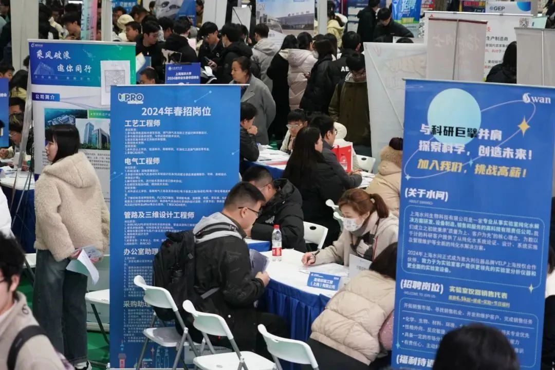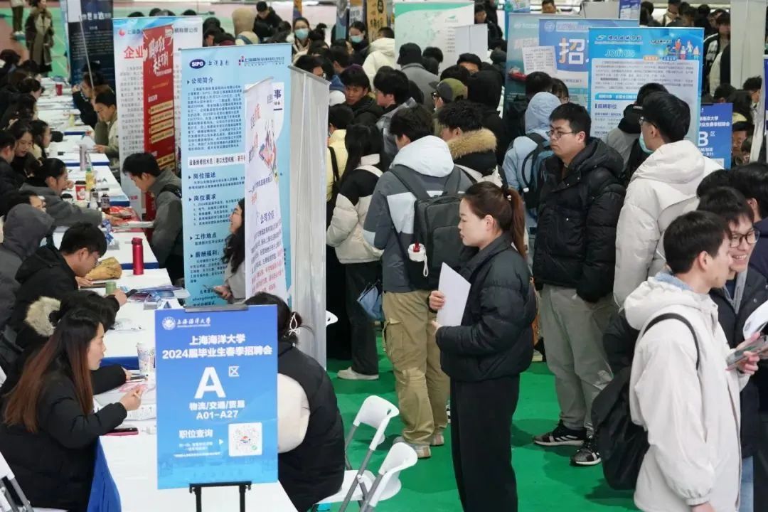 近日,上海海洋大学2024届毕业生春季招聘会举行。这是上海海洋大学在新学期的第一场线下招聘会,吸引200余家单位参会。